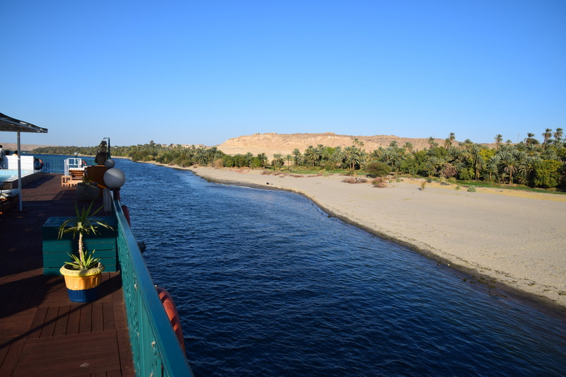 Wieder an Bord starten wir unsere Reise auf dem Nil. Die gesamte Strecke auf dem Nil betgrägt 400 km, die wir innerhalb von 7 Tagen mit längeren Aufenthalten zurück legen.