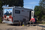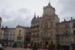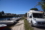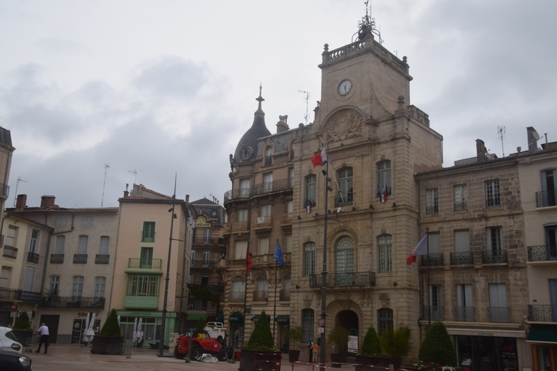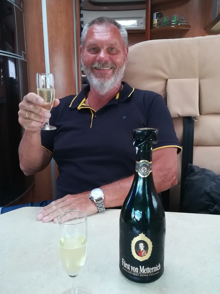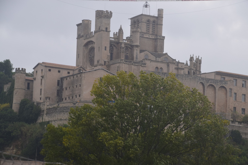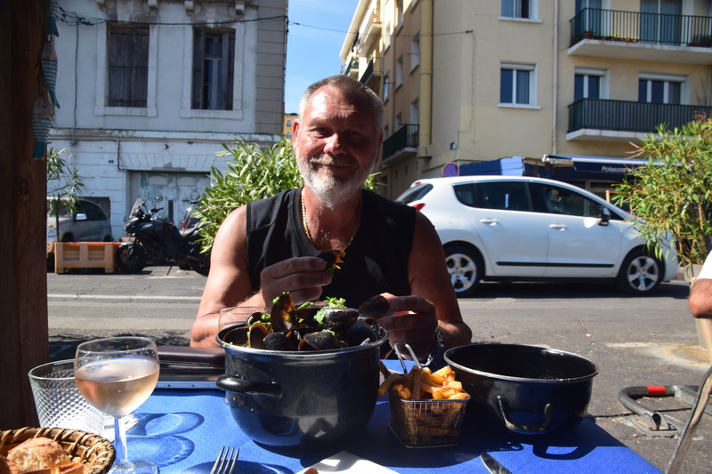 Die Nacht war sehr unruhig, wir wurden zusammen mit „Gretchen“ richtig durchgeschüttelt so stürmisch war es. Wir starten, in Marseillan-Plage sieht Mario, dass Markt ist, und will den Platz anfahren. Schwierig wird die Suche nach einem Parkplatz, denn alle Plätze haben eine Höhenbegrenzung. Wir fahren in eine Straße in der sich eine Baustelle befindet und müssen deshalb umkehren. Mario fährt zu weit nach rechts und streift mit dem „Hinterteil von Gretchen“ die Holzabgrenzung am rechten Straßenrand ☹. Wir reißen uns die seitliche Schürze ab, drücken sie, mit Hilfe eines hinzugekommenen Mannes, wieder etwas fest und fahren in eine Seitenstraße um die endgültige Reparatur vorzunehmen. Zum Glück wurde das Teil nur aus der Verankerung gerissen und wir bekommen es wieder fest (hoffen, dass es auf Dauer hält). Unsere Weiterfahrt führt uns nach Beziers, wo wir die Altstadt mit Kathedrale und Markthalle besuchen. Es ist bereits Mittag und da Mario Geburtstag hat gönnen wir uns in der Markthalle ein Gläschen Wein! Weiter geht es nach Narbonne, auch hier machen wir einen Bummel durch die Altstadt und besichtigen die Kathedrale, einen Übernachtungsplatz gibt es leider nicht, so dass wir nach Gruissan fahren. Hier kommen wir am Jachthafen an einen Stellplatz und stellen schon bei der Anfahrt fest, dass wir hier schon einmal gestanden haben. Nun feiern wir Marios Geburtstag mit einer Flasche Sekt.