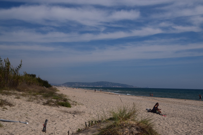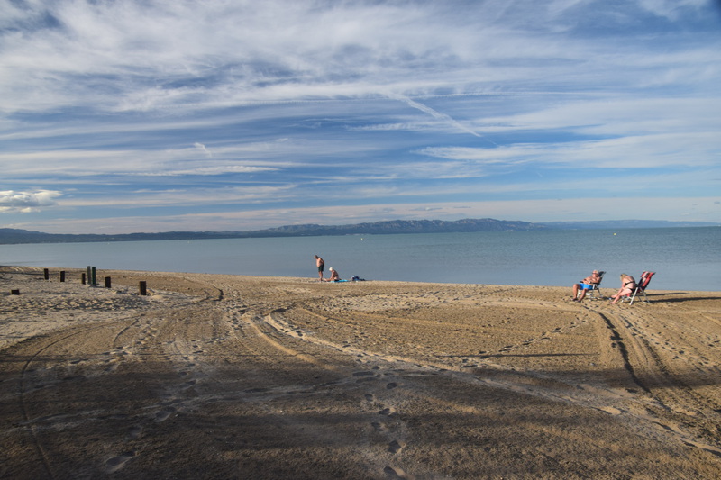 Unser Übernachtungsplatz befindet sich direkt hinter einer Düne. Wir machen uns mit den Rädern auf en Weg und fahren immer am Meer, bzw. hinter der Düne entlang nach Marseillan Plage und, nach einer kurzen Pause wieder zurück, das waren knappe 20 km. Danach geht es zum baden und sonnenbaden ans Meer. Es bewölkt sich und strammer Wind zieht auf, so dass wir uns nach 1 ½ Stunden wieder zu „Gretchen“ begeben.