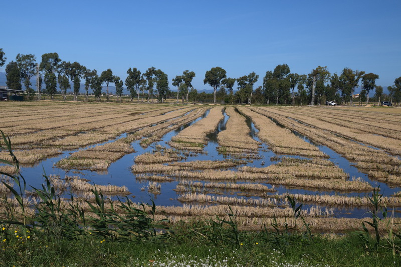 Badetage , Der Wind ist nicht mehr so stark wie gestern und wir starten um 11 Uhr mit unseren Rädern. Wir fahren zum Ebrodelta und dann weiter zwischen Reisfeldern hindurch wieder zurück. Nach gefühlten 100 Mückenstichen und 20 km später sind wir zurück und gehen baden.