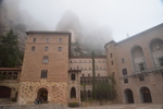 Aber von vorne – wir starten heute Morgen bei Regen in Richtung Spanien. Überqueren die Französisch-Spanische Grenze und fahren Richtung Tarragona. Während der Fahrt schmökere ich im Reiseführer und komme auf die Idee, einen Umweg über Montserrat zu machen. Alles hört sich gut an und lt. Buch kann man auf dem Parkplatz von Kloster Montserrat über Nacht parken. Das Wetter ist schlecht, der Nebel hängt in den Bergen, die Sicht ist Nahe Null ☹. Wir kommen auf dem Parkplatz an, lesen die Parkgebühren – ich lese 65,-€, Mario interpretiert, dass diese Gebühr für Busse gilt und Womos für 15,-€ stehen. Wir ziehen ein Ticket, sämtliche Plätze sind so schräg, dass ein Übernachten hier oben nicht in Frage kommt. Wir besichtigen das Kloster. Es ist schon faszinierend, wie man im Jahre 1025 ein solches Bauwerk in den Fels gearbeitet hat. Die Blütezeit des Kloster war in der Zeit von 1493 – 1835. Da wir für eine Wanderung hier oben zu spät sind und auch die Sicht für eine solche nicht gegeben ist, gehen wir zurück zu „Gretchen“. Am Kassenautomat kommt dann die Überraschung schlechthin. Für die Stunde parken bezahlen wir sage und schreibe 65,-- € (ok, wir könnten für dieses Geld auch 24 Stunden stehen – wenn man denn einen geraden Platz finden könnte) ☹ - so eine Abzocke haben wir noch nirgendwo erlebt! Montserrat einmal – und nie wieder !!!!!