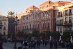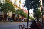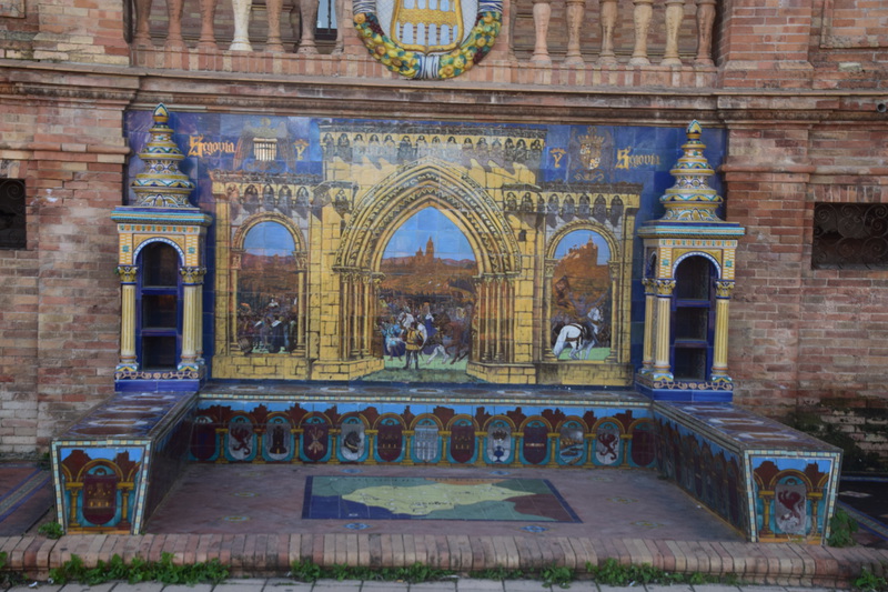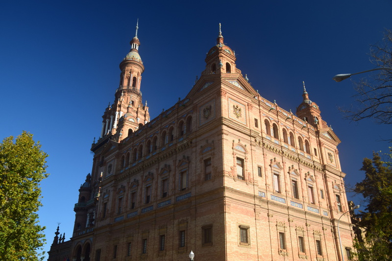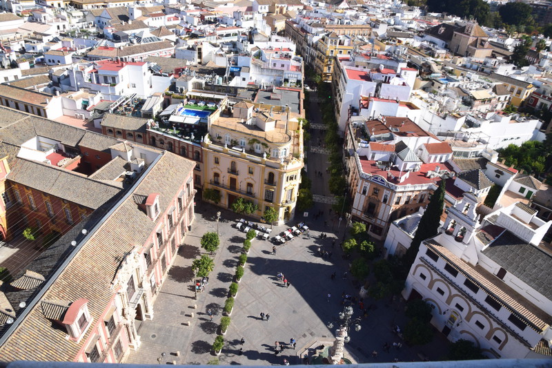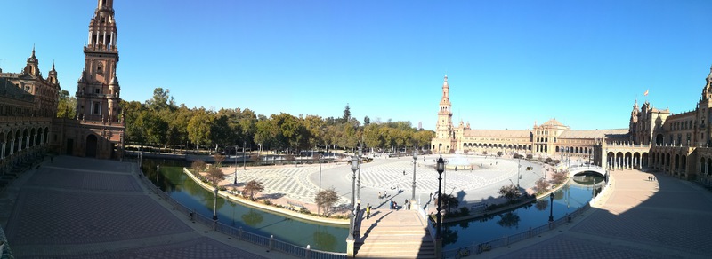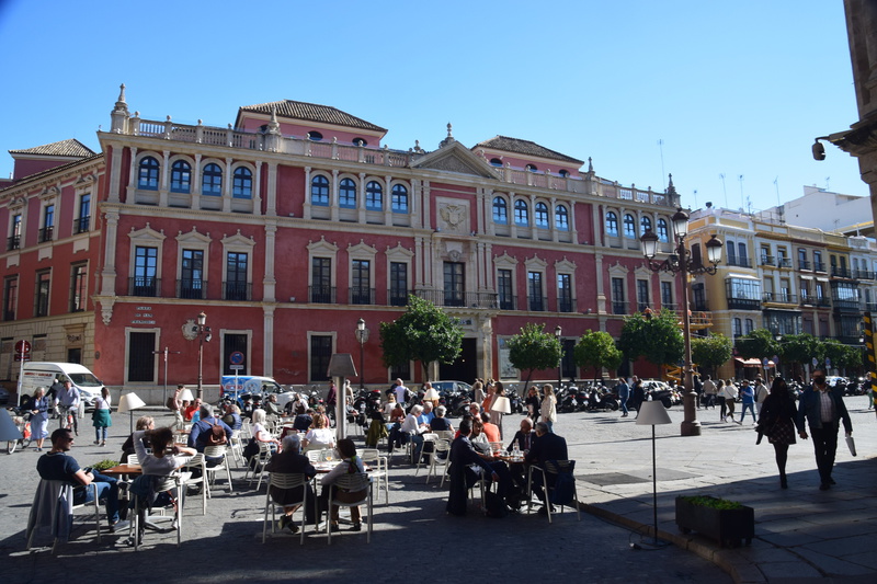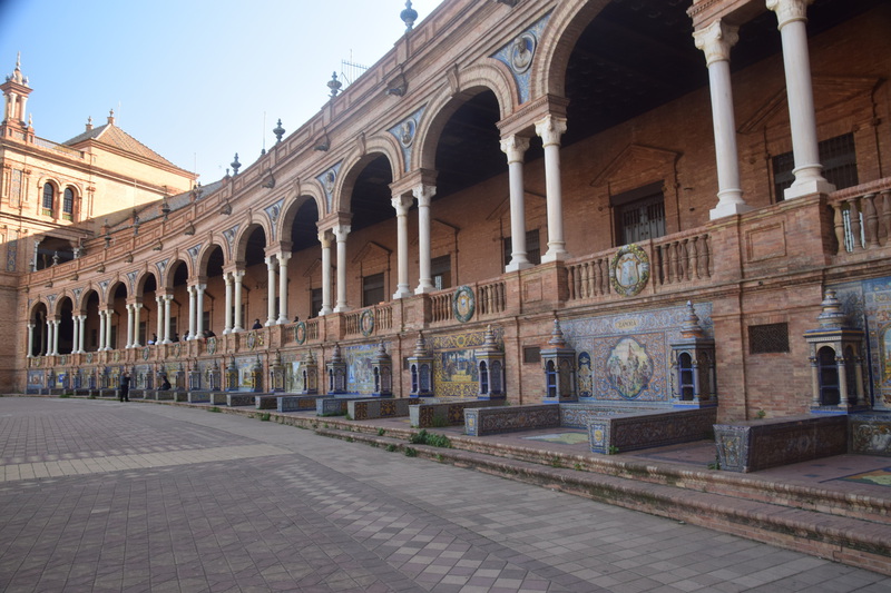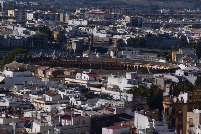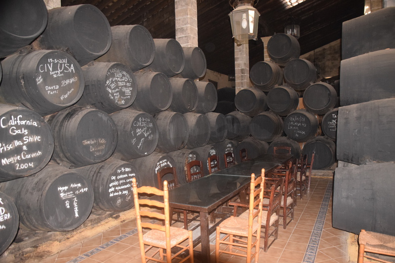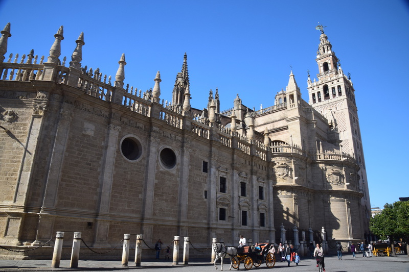 Wir fahren noch einmal mit den Rädern in die Stadt. Durch Zufall kommen wir zur Bodega Dios Baco – wir fragen, ob wir uns umschauen können und bekommen die Auskunft, dass keine Führungen mit Guide stattfinden, wir aber gerne alles anschauen können. Die Firma wurde im frühen 20. Jahrhundert gegründet. Wir kommen durch das Museum – dieser Raum fasst Fässer mit 250 ltr. Fassungsvermögen für die Alterung von Oloroso. Im nächsten Raum lagern Fässer, die neu aussehen aber ungefähr 100 Jahre alt sind. Die größten Fässer beinhalten 4.000 Liter Sherry. Außerdem wird auch Brandy hergestellt. Wir testen 5 verschiedene Sherries und kaufen 3 Sorten ?. Mit diesem wertvollen Gut geht es zurück zu Gretchen, hier wird alles sicher verstaut und wir machen uns auf den Weg nach Sevilla, wo wir um 16 Uhr unsere Runde durch die Stadt beginnen. Heute verschaffen wir uns nur einen groben Überblick, was aber auch 3 Stunden dauert.