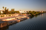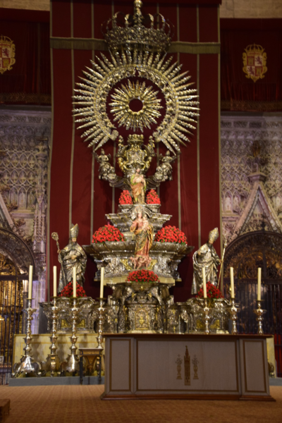 Um 10 Uhr machen wir uns auf den Weg die Stadt zu erkunden. Als erstes kommen wir zum prachtvoll angelegten Plaza de América, der bereits Teil des Parks Maria Luisa ist, der im 19. Jahrhundert durch die Tochter König Ferdinands VII. gestiftet wurde. Hier sind wir im grünen Herzen von Sevilla. Vorbei an verschiedenen, prachtvollen Botschaftsgebäuden kommen wir zu Plaza de Espana. Er besteht aus einem halbelliptischen Platz mit 200 m Durchmessern als Symbol für eine Umarmung von Spanien zu den ehemaligen amerikanischen Kolonien. Der Platz ist mit 2 Türm, 74 m hoch, gekrönt. Der Bau hat einen zentralen Brunnen, 4 Brücken als Erinnerung der 4 Königreiche Spaniens und eine Sammlung Fliesenbilder der 52 spanischen Provinzen. Im Arkadengang bietet eine Gruppe Musiker mit 2 Tänzerinnen eine Aufführung im Flamencotanz. Von hier geht es zur Kathedrale. Der Bau der Kathedrale Sevillas fing im 13. Jahrhundert an und hatte ein eindeutiges Ziel: „Lass uns eine Kirche so riesig machen, dass die Gäste uns für verrückt halten“. Dafür wurde die Struktur der ehemaligen Großmoschee und das Minarett Giralda als Grundstock genommen. Der Turm war mit 97 m der höchste Turm seiner Zeit. Als der Bau im 16. Jahrhundert fertig wurde, war die Kathedrale die größte gotische Kirche der Welt und die dritte der christlichen Länder. Der Turm hat keine Stufen, sondern 2,50 m breite Rampen, die einem Reiter die Möglichkeit bot, über 35 Stockwerke auf die Aussichtsplattform in 70 Metern Höhe zu kommen. Gleich neben der Kathedrale befindet sich der Königspalast „Real Alcazar“ mit seinen Gärten. Für die Besichtigung von Kathedrale und Königspalast haben wir alleine 3 Stunden benötigt und haben mit Sicherheit nicht alles gesehen. Nach insgesamt 9 Stunden Besichtigung eines „kleinen Teils“ von Sevilla kehren wir zu „Gretchen“ zurück.