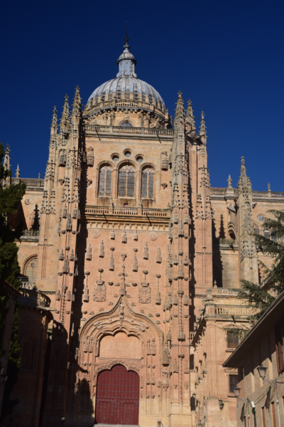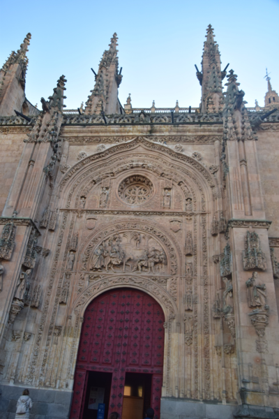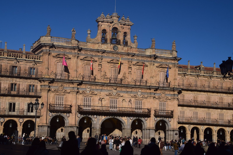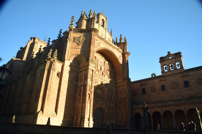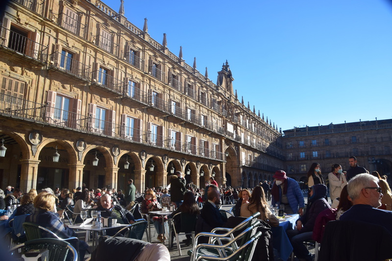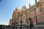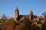 Wir haben uns für unsere Heimreise vorgenommen 250 – 300 km am Tag zu fahren und so gelangen wir heute bis Salamanca. Diese Stadt hat ihre Wurzeln in keltischer Zeit und ist für ihre kunstvolle Sandsteinarchitektur und die Universität bekannt, die im 12. Jahrhundert gegründet wurde. Sehenswürdigkeiten der Stadt sind wiederum Kirchen und hier die neue Kathedrale, sie ist zusammen mit der angrenzenden kleineren alten Kathedrale die Bischofskirche des römisch-katholischen Bistums Salamanca. Bei schönstem Sonnenschein bummeln wir nach der Besichtigung der Kathedrale zum Plaza Mayor, dem Hauptplatz im Zentrum der Stadt. Durch die Altstadtstraßen wandern wir, über die Brücke, die den Fluss Tormes überspannt zu unserem heutigen Übernachtungsplatz. Trotz des sonnigen Wetters sind die Temperaturen inzwischen auf 14° abgesunken.