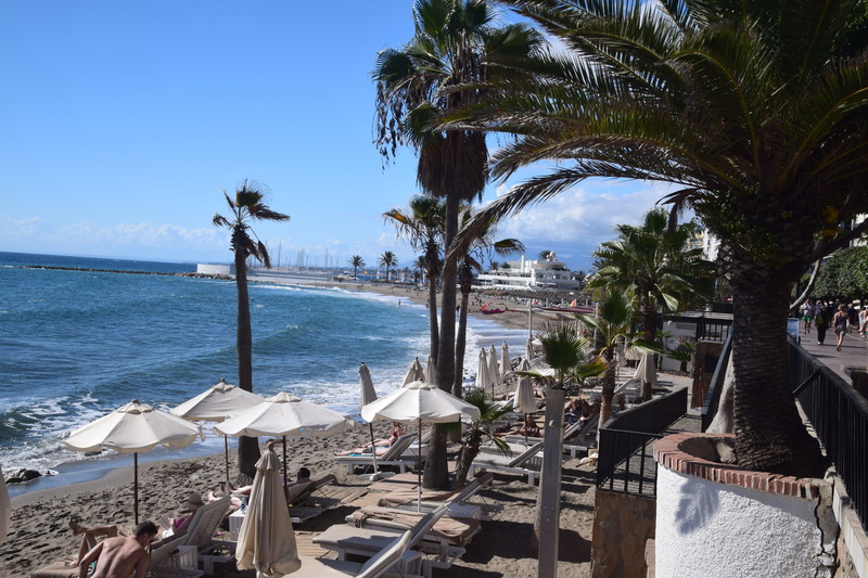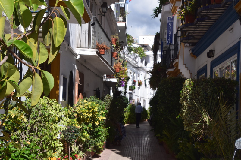 Wir verlassen Malaga und fahren auf der Küstenstraße entlang. In Marbella machen wir Halt um die Altstadt zu besichtigen. Die schmalen Gassen deren Hauswände mit blauen Blumentöpfen geschmückt sind geben ein prachtvolles Bild ab. Wir kommen zur Plaza de la Iglesia mit der Kirche Nuestra Senora de la Encarnacion. Die Kirche ist mit Blumen geschmückt, die Bänke sind mit elegant gekleideten Personen besetzt – alle warten auf das Brautpaar. Wir fahren weiter und steuern den Hafen Puerto Banús an. Hier sollen Yachten aller Größen der Reichen und „Schönen“ liegen. Leider finden wir wieder einmal keinen Platz um unser „Gretchen“ zu parken. Im Städtchen Estepona finden wir einen herrlichen Platz an einen kleinen Bucht.