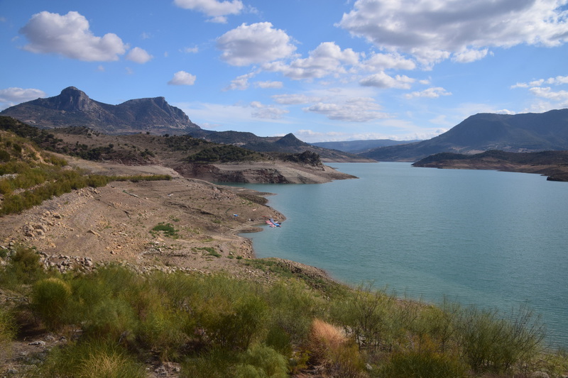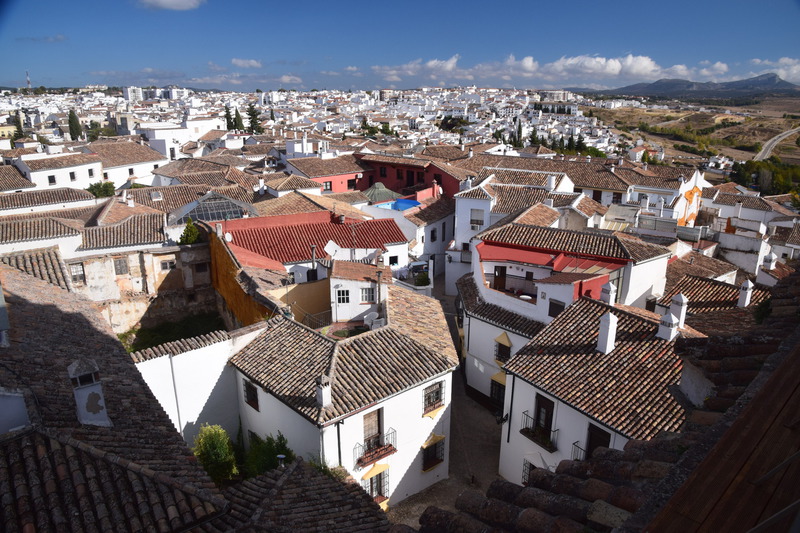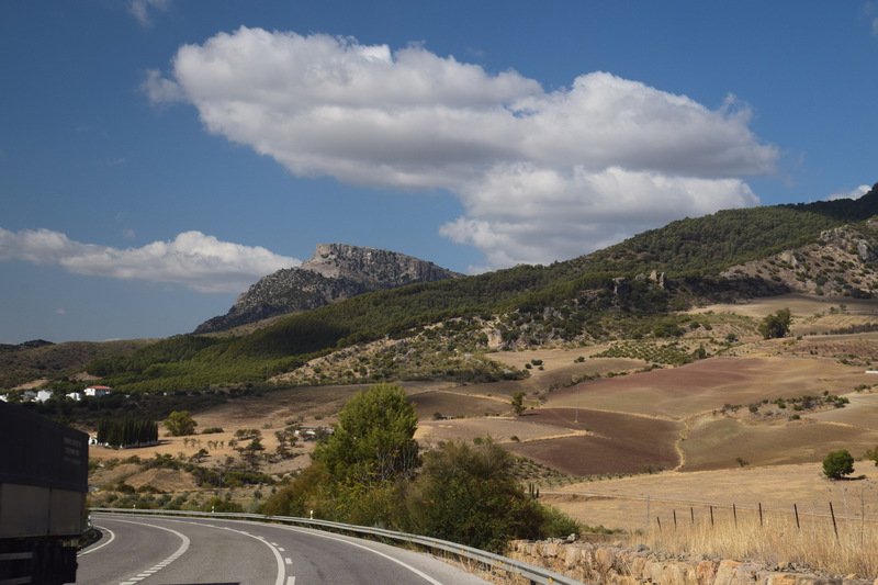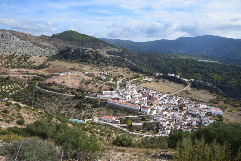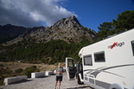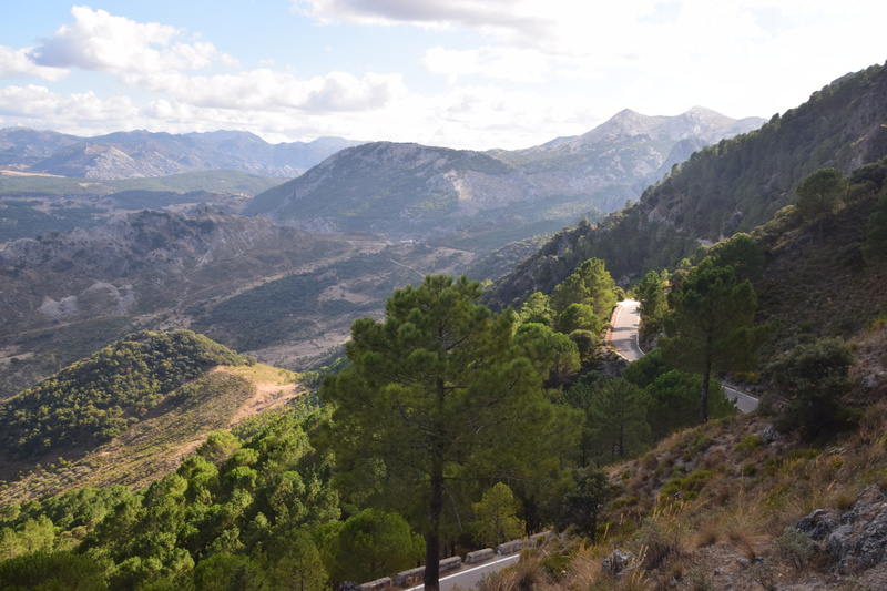 Heute Morgen machen wir uns mit den Rädern noch einmal auf den Weg weitere Sehenswürdigkeiten von Ronda zu erkunden. Wir fahren durch die Parkanlage Alamenda del Tajo aus dem 19. Jahrhundert, hier bietet sich ein schöner Blick von der Felskante auf die Umgebung. Wenige Meter weiter stehen wir vor der Stierkampfarena, die wir heute besichtigen. Es ist schon eindrucksvoll in der Arena mit ihren 66 Metern Durchmessern zu stehen und hoch auf die Ränge zu schauen auf denen ca. 5.000 Zuschauer Platz haben. Weiter geht es über die Puente Nuevo zur Iglesia de Santa Maria la Mayor, der Hauptkirche von Ronda. Wie viele andere Kirchen ging sie aus einer Moschee hervor – dies ist auch an einem der Kirchtürme zu erkennen. Um die Mittagszeit verlassen wir Ronda und fahren weiter in die Berge zum Städtchen Algodonales. Leider nehmen wir den Abzweig der uns mitten durch den Ort führt, es wird eng und enger – der Sonnenschirm einer Bar ragt zu weit und zu niedrig in die Straße, so dass wir ihn streifen. Zum Glück ist weder dem Sonnenschirm noch unserem „Gretchen“ etwas passiert. Unser weiterer Weg führt uns nach Zahara de la Sierra, entlang eines Stausees – wir kommen auf die Bergstraße und wieder wird es, bei Gegenverkehr richtig eng. Nach jeder Kurve/Kehre bietet sich ein anderer toller Blick auf die Bergwelt und wieder sehen wir aus nächster Nähe Gänsegeier über uns. Wir befinden uns im Naturschutzgebiet „Parque Natural de la Sierra“ – hier würden wir gerne übernachten, leider ist es nicht erlaubt. Auch Wanderungen in diesem Gebiet können nur mit Genehmigung gemacht werden. So fahren wir weiter und erreichen am späten Nachmittag das Städtchen Ubrique, wo wir bleiben.