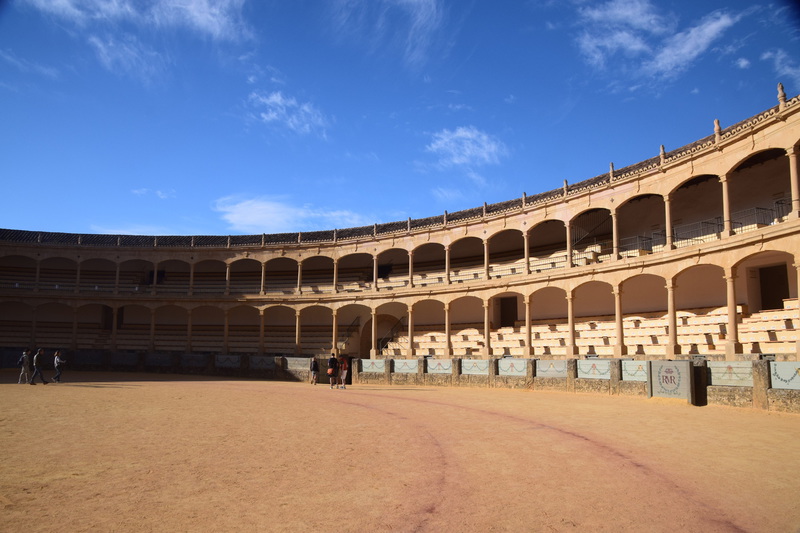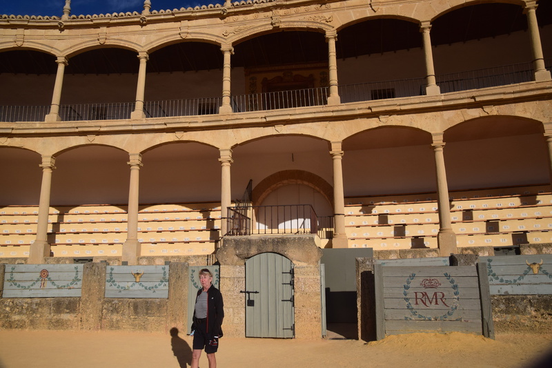 Wie an den letzten Tagen möchten wir auch heute Morgen baden gehen. Doch leider sind über Nacht viele kleine Quallen in die Bucht gespült worden – wir verzichten auf das Bad und starten wenig später um in die Berge zu fahren. Ein erster Halt machen wir beim Ort Casares. Hier hat man zum ersten Mal die Chance Gänsegeier zu sehen, die in einer Brutkolonie am Felsgrat leben – und wir haben sie recht nah gesehen. Wir wandern vom Parkplatz zum Ort und erklimmen, durch schmale Straßen gehend die Burgruine Castillo de Casares. Weiter geht es in Richtung Ronda und wir machen alle paar Kilometer Halt um in Schluchten zu schauen, gleichzeitig sehen wir immer wieder unzählige Gänsegeier ( 50-…), die über uns ihre Kreise ziehen. So nahe haben wir so große Raubvögel in freier Wildbahn noch nie gesehen ( Spannweite bis 2,60m ). Alleine die Ansicht dieser Tiere hat die Fahrt in diese Bergwelt gelohnt – etwas schöneres haben wir heute nicht gesehen. Die Straße wird immer schmaler und kurviger (Mario kommt voll auf seine Kosten) und so kommen wir zum Schlumpfdorf Júzcar (vor einigen Jahren haben die Macher des US-Animationsfilms „Die Schlümpfe“ das Dorf als perfekte Kulisse entdeckt und mit Geld, Überredungskünsten und 9000 Litern blauer Farbe die Bewohner der Gemeinde veranlasst, ihre Häuser in schlumpfblau zu streichen). Der Besuch des Ortes lohnte sich nicht – vielleicht auch, weil wir in der frühen Mittagszeit dort waren. Nach weiteren 20 km kommen wir in die 35.000 Einwohner-Stadt Ronda, sie zählt zu den bekanntesten Sehenswürdigkeiten Andalusiens. Grund dafür ist vor allem die gewaltige, von Brücken überspannte und bis zu 160 Meter tiefe Schlucht El Tajo. Eine weitere Sehenswürdigkeit ist die Stierkampfarena Real Maestranza. Sie wurde 1785 eröffnet und ist damit die älteste noch existierende Arena des Landes.