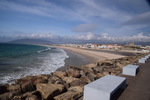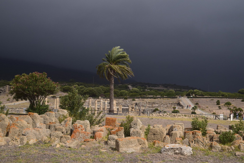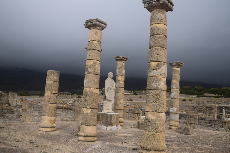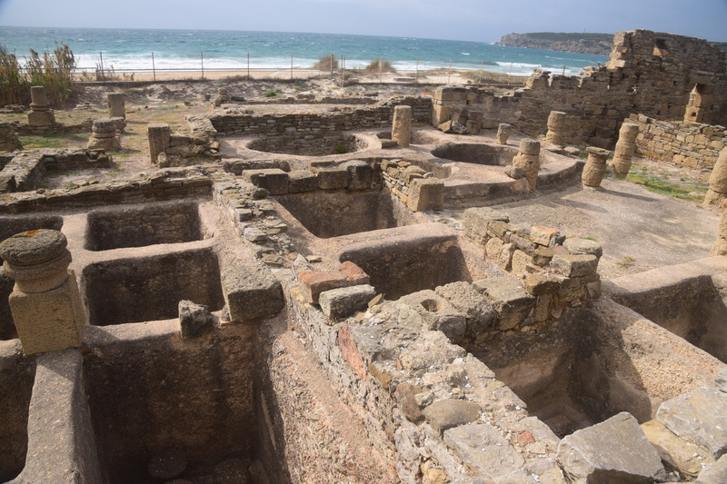 Weiter geht es heute mehr oder weniger die Küste entlang. Das Wetter ist seit gestern nicht mehr so toll. Der Himmel ist grau, die Berge mit Wolken verhangen. Ein erster Stopp gibt es an der großen Sanddüne bei Valdevaqueros mit einem schönen Blick auf die Bucht und den Atlantik, der heute ziemlich aufgewühlt ist. Unser Weg führt uns von hier zum Ort Bolonia mit der Ausgrabungsstätte von Baleo Claudia. Sie war der bedeutendste römische Fischereihafen der Iberischen Halbinsel und wurde im 2. Jahrhundert v.Chr. gegründet. Hauptsächlich wurde Thunfisch zur Herstellung der begehrten Würzsoße Garum verarbeitet. Hier kommt man als erstes durch ein Informationszentrum mit Ausstellungsstücken, anschließend führt ein Weg durch die Mauern, Tempel, Thermen und das Theater. Beim Stopp in Barbate beginnt es zu regnen und somit fällt der Strandspaziergang sehr kurz aus. Letztendlich landen wir in Los Canos de Meca, vom Strand aus hat man einen Blick auf das Cabo de Trafalgar.