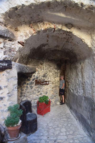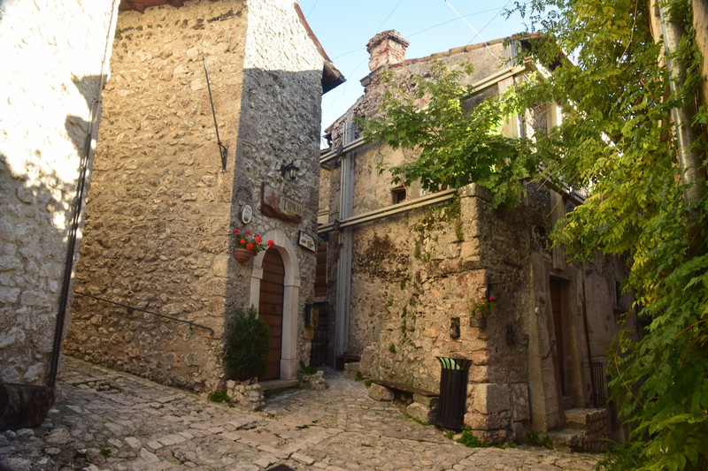 Wenige Kilometer nach denen wir Calascio wieder verlassen haben erreichen wir einen weiteren kleinen malerischen Ort Namens Santo Stefano di Sessanio, besticht durch seine engen Gassen. Mittendrin zwängt sich „La Bruscella“ durch die grauen Hausfassaden, ein Nadelöhr von einer Gasse, das der sog. „kleinsten Gasse Italiens“ in Civetella del Tronto Konkurrenz macht. Über den Dächern des Ortes ragt der markante Medici-Turm – der nach dem Erdbeben 2009 zum Opfer viel und nun wieder neu aufgebaut worden ist. Nun fahren wir aber endgültig nach Assergi, und hier an die Talstation bei Fonte Cerreto