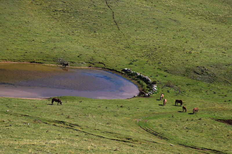 Wir stehen auf knapp 1.000 Höhenmeter, entsprechend kalt ist es heute Morgen. Mario macht früh die Heizung an, so dass es, als wir aufstehen, im Wohnmobil angenehme, 20° hat. Wir laden unsere Fahrräder aus und um 10 Uhr starten wir bei Sonnenschein und blauem Himmel unsere Tour zur Bergstation des Campo Imperatore. Die Bergwelt ist einmalig und die weite Hochebene von karger Schönheit. An kleinen Seen weiden Pferde, eine große Schafherde ist unterwegs und bei einer leichten Abfahrt müssen wir bremsen um zu warten bis eine Rinderherde die Straße überquert hat. Die letzten 10 km hinauf auf 2.100 m sind besonders anstrengend, da dabei eine Steigung von 10 % zu befahren ist. Wir kommen nach knapp 3 Stunden, 27 km und 1300 gefahrene Höhenmeter glücklich und zufrieden an. Nach einer angemessenen Pause nehmen wir den Rückweg in Angriff, der nicht halb so anstrengend ist (weil meist bergab), wie der Hinweg. Als wir gegen 16 Uhr zurück sind, Stühle raus und machen Siesta – das haben wir verdient!