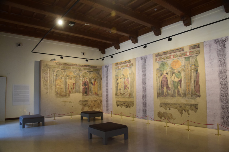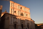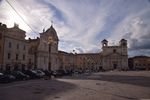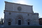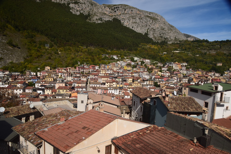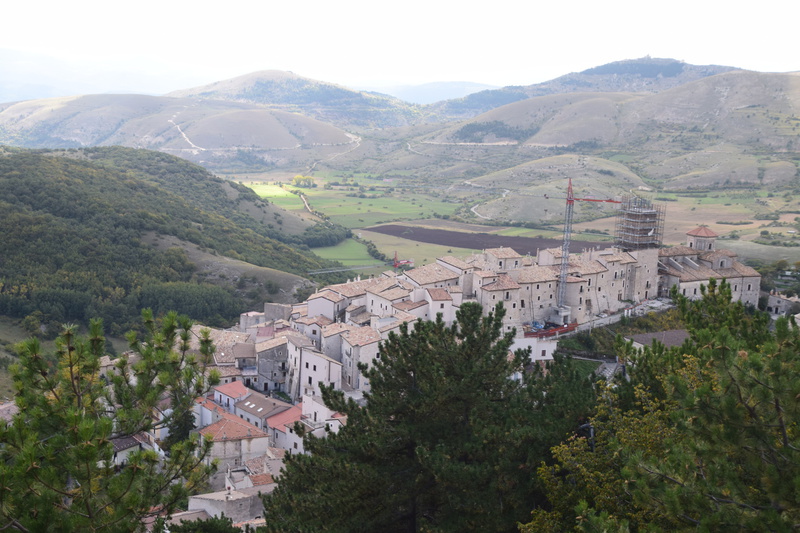 Heute fahren wir mit „Gretchen“ zur Bergstation des Campo Imperatore 2100m, dort schnüren wir unsere Wanderschuhe und machen uns auf den Weg zum Rifugio 2400 Höhenmeter. Bereits kurz vor 12 Uhr sind wir oben und genießen den Rundumblick bei strahlend blauem Himmel. Wenig später ziehen Nebelschwaden herein und wir machen uns auf den Rückweg. Unser heutige Fahrstrecke führt uns durch eine unwirklich, schöne, steinerne Landschaft, die eher an eine zentralasiatischen Hochebene als an Mittelitalien erinnert. Jetzt verstehen wir, warum diese Gegend als „piccolo Tibet dell’Abruzzo“ (kleines Tibet der Abruzzen) genannt wird. Man erzählt: „Als der Dalai Lama einmal die Hochebene besucht hat, sollen ihm die Tränen gekommen sein, die Landschaft habe ihn an seine verlorene Heimat erinnert“. Wenig später erreichen wir Castel del Monte mit seinen verwinkelten Gassen. Jetzt geht es hinunter in das Aterno-Tal mit der Stadt L’Aquilla, die unser heutiges Ziel ist. Die Altstadt von L’Aquila ist immer noch schwer gezeichnet von der Erdbebenkatastrophe am 6. April 2009, viele Häuser sind mit Stahlträgern versehen und mit Bändern umspannt, die den Einsturz verhindern sollen. Der Wiederaufbau ist in vollem Gange, überall stehen Kräne und Bauzäune – bis 2027 soll L’Aquila in altem Glanz erstrahlen. Wir werfen einen Blick in die Kirche Sante Maria del Suffragio und in die Basilica di San Bernadio und bummeln zum Forte Spagnolo (Castello) und dem Brunnen „Fontana Luminosa“. Danach wird es höchste Zeit auf Marios Geburtstag anzustoßen!