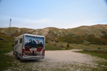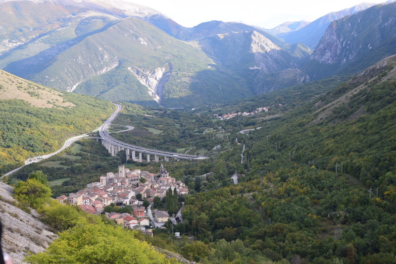 Wir lassen L’Aquila hinter uns, denn wir wollen einen weiteren Nationalpark erfahren. Nachdem sich Mario an einer Tankstelle fürchterlich aufgeregt hat, weil er kein Gas tanken durfte ☹ fahren wir bis Rocca di Mezzo, hier entdecken wir direkt an der Straße ein kleines, nettes Restaurant und machen eigentlich Kaffeepause, aus dieser wird dann aber eine Mittagspause mit essen der für die Abruzzen typischen Spieße aus Schaffleisch – sehr lecker. Westlich der Piana del Fucino erreichen wir die Stadt Celano wo wir wiederum die Burg Piccolomini besichtigen. In der Burg aus dem 14. Jahrhundert ist heute ein Museum untergebracht. Sie stellt eine der eindrucksvollsten Burganlagen in den Abruzzen dar. Nach dieser Besichtigung geht es weiter nach Süden auf einer spektakulären Strecke durch das Tal und die enge Schlucht des Sagittario. Am Lago di Scanno vorbei, durch einen Torbogen (max. 3m hoch, 3 m breit) fahren wir zum Passo Godi. Dieser befindet sich auf 1.600 m und wir finden hier überraschend einen tollen Übernachtungsplatz.