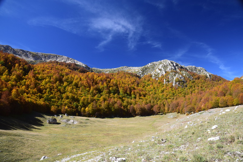 Wir befinden uns im Nationalpark Lazio e Molise, beim Mt. Godi. Wieder ist das Wetter wunderbar und so beschließen wir eine Wanderung zu unternehmen. Diese führt uns im wahrsten Sinne des Wortes über Stock und Stein. Wir sind die Wanderwege Y7, Y1 und A4 gelaufen. Als wir nach 3 Stunden auf den A4 treffen und diesen etwa eine halbe Stunde gelaufen sind, stellen wir fest, dass diese Wegführung nicht stimmen kann und so kehren wir um. Nach weiteren 3 Stunden sind wir, total fertig, wieder zurück. Wir haben zwischen 600 und 800 Höhenmeter (rauf und runter) zurückgelegt. Die Tour war anstrengend, die Landschaft jedoch wirklich sensationell.
