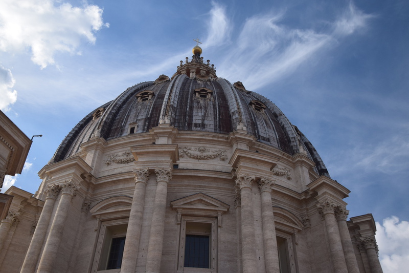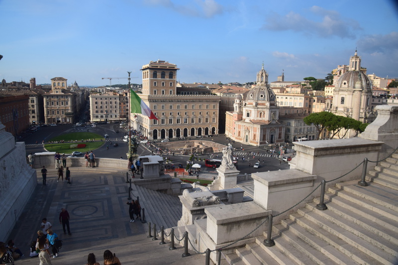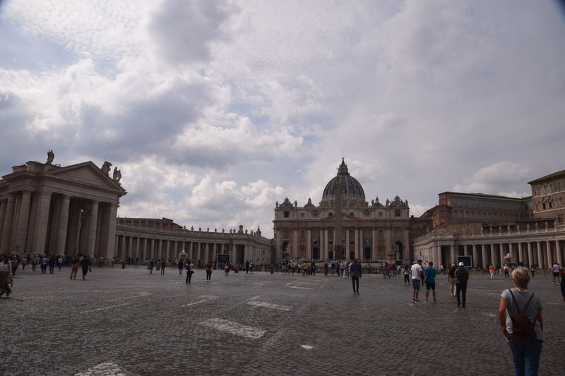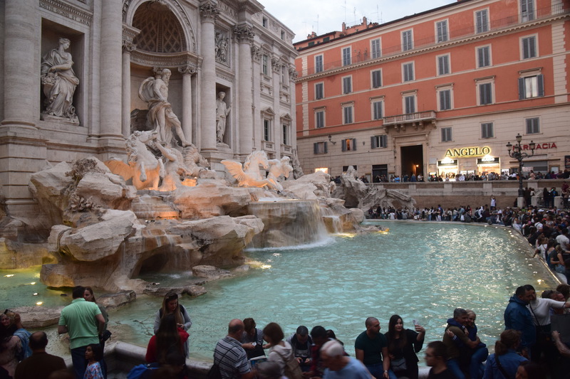 Mit dem Bus geht es wieder in die Stadt, heute haben wir „Großes“ vor – wir erkunden Rom zu Fuß. Beim Teatro di Marcello starten wir unsere Wanderung. Wirklich beeindruckend ist, dass an jeder Ecke und in fast jeder Straße alte Säulen und Ausgrabungen zu sehen sind. Wir gehen über viele schöne Plätze und werfen Blicke in Kirchen (meist findet gerade ein Gottesdienst statt). Die Piazza Navona auf der sich 3 Barockbrunnen befinden ist umrahmt von Straßencafés und Palästen ist ein wahrer Augenschmaus. Unser Weg führt uns mehr zufällig zu Museum Leonardo da Vinci, dessen Besuch lohnenswert ist. Am Justizpalast und dem Castel Sant’Angelo vorbei gelangen wir zum „Piazza San Pietro“ und stehen wenige Minuten später vor dem Petersdom. Wir stellen uns die Schlange um in den Dom zu gelangen. Als wir den Eingang erreicht haben, entscheiden wir uns dafür (wo wir schon einmal da sind) die Domkuppel zu besteigen. Also stellen wir uns wieder an und beginnen eine viertel Stunde später mit dem Aufstieg – etwa nach der Hälfte der Treppen kommt man auf eine Art Balkon, von dem aus man einen Blick auf den Boden und in das Dachgewölbe werfen kann. Nach 551 Stufen befinden wir uns auf der Aussichtsplattform und haben eine wundervolle Aussicht auf den Platz und über die Dächer von Rom. Wieder unten angekommen, betreten wir den Dom und sind auf ein neues beeindruckt von den Bodenmosaiken, Deckenbemalungen und der Größe. Wir verbringen bestimmt insgesamt 1 ½ Stunden hier. Nach dem Verlassen des Doms benötigen wir erst einmal eine kurze Pause, danach geht es weiter. Durch die engen Straßen der Altstadt gelangen wir zum Pantheon, das wir leider nicht besichtigen können (es werden nur noch Personen mit Reservierung eingelassen). Als geht es weiter zur „Spanischen Treppe“, die Gassen und der Platz vor der Treppe ist überfüllt mit Menschen, die Stimmung ist ausgelassen, eine Gruppe Musiker sorgt dafür. Nun steht noch der Besuch des Trevi-Brunnens auf unserem Programm. Auch hier stehen die Menschen dicht an dicht, ein Vordringen an den Brunnenrand ist nicht möglich (da Gedrängel ist mir angesichts Corona, zu groß). Inzwischen ist es Abend geworden und wir lassen uns in einem der vielen Restaurants nieder. Von hier aus lässt sich das Geschehen in der Gasse ganz entspannt beobachten. Die Rückfahrt zu unserem Stellplatz treten wir heute mit dem Bus an.