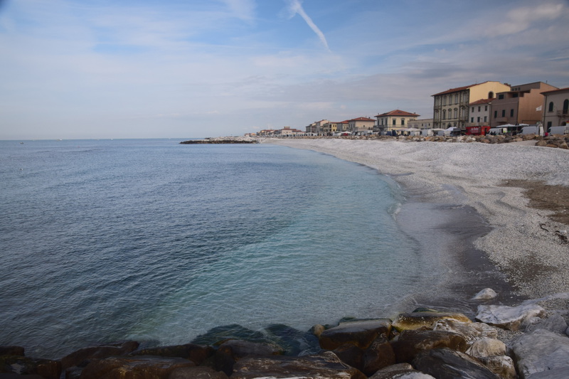 Da wir große Straßen meiden, geht es wieder durch die Pampa mit vielen kleinen Dörfern in Richtung Mittelmeer. Auf unserer Strecke kommen wir an einem Weingut vorbei, hier halten wir und machen eine kleine Weinprobe (2 Fl. Weiß- und 2 Fl. Rosèwein werden gekauft). Kurz vor Livorno treffen wir dann auf die Steilküste (keine Möglichkeit zu stehen ☹). Am Aquarium (großer Parkplatz) machen wir Stopp um die Hafenpromenade entlang zu bummeln. Danach geht es die Küste entlang bis Marina di Pisa, wo wir einen Übernachtungsplatz erspähen. Jetzt ist ein Spaziergang entlang der Uferpromenade angesagt, wobei wir einen schönen Sonnenuntergang bewundern können. Zurück bei „Gretchen“ wird wieder einmal richtig gekocht und dabei hören wir von einem Lokal in unmittelbarer Nähe der Livemusik zu.