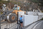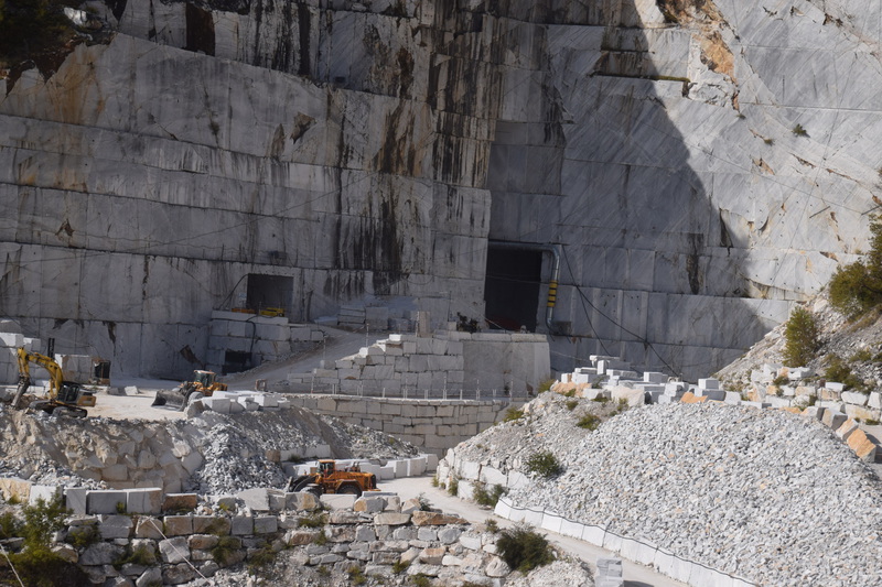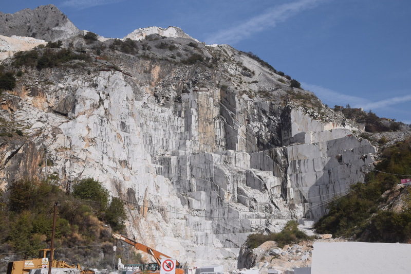 Heute ist wieder einmal „radeln“ angesagt. Nach dem Frühstück machen wir uns auf den Weg nach Carrara bzw. darüber hinaus zu den Marmor-Steinbrüchen, die vor uns aufragen. Beim Museo Civic del Marmo halten wir an, um uns die auf dem Gelände ausgestellten Arbeiten anzusehen. Wir kommen mit einem Mann (Portugiese) ins Gespräch, der gerade dabei ist seine Arbeiten einzupacken. Er zeigt uns die unterschiedlichen Marmorarten, dabei ist Marmor aus Portogal und Spanien und aus Carrara. Das zu Beginn gemütliche radeln wird anspruchsvoll, nicht weil es Bergauf geht, sondern weil die Straße schmäler wird und LKWs beladen mit übergroßen Steinblöcken an uns vorbeidonnern. Vor der Kurve wird gehupt, damit der entgegen rasende LKW noch ausweichen kann. Im Örtchen Bedizzano kommt von oben ein Bus, der vor und zurück fahren muss, bis er um die Kurve kommt, anschließend muss er wieder zurück, weil LKWs entgegenkommen. Wir fahren zum Dorf Colonnata, von wo aus man einen tollen Blick auf die Steinbrüche hat. Weiter geht es zur Cave de Romana, wo auf einem Gelände dargestellt wird, wie vor einigen hundert Jahren der Marmor abgebaut wurde. Jetzt geht es wieder zurück. Als wir in Bedizzona ankommen wählen wir einen anderen Weg nach unten, auf diesem dürfen keine LKWs fahren – was somit sehr entspannt war.