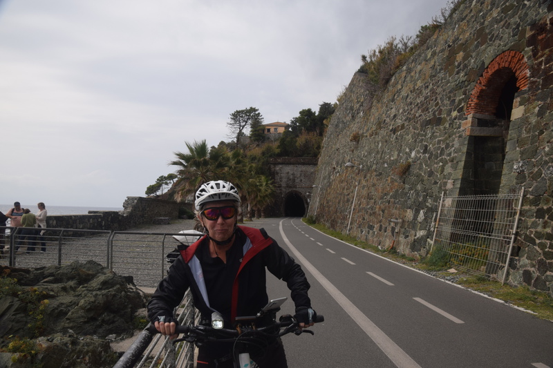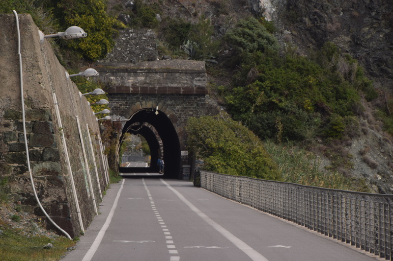 Weiter geht es. Vorbei an La Spezia fahren wir zuerst nach Levanto und von dort nach Bonassola (und wieder sind die Straßen eng). In Bonassola angekommen finden wir einen Platz mit Meerblick und machen uns auf den Weg den Ort zu Fuß zu erkunden. Es ist Mittag und wir holen unsere Fahrräder aus dem Wagen. Von hier aus führt eine Tunnelstrecke (nur für Radfahrer und Fußgänger) nach Levanto und in die andere Richtung nach Framura. Die Tunnel sind immer wieder unterbrochen mit Balkonen, so dass man einen Blick auf den Küstenstreifen werfen kann. Wir fahren in beide Richtungen, wobei Levanto ein schönes Städtchen ist, die Fahrt nach Framura (wir kommen nur bis kurz vor den Bahnhof) hat sich nicht gelohnt.
