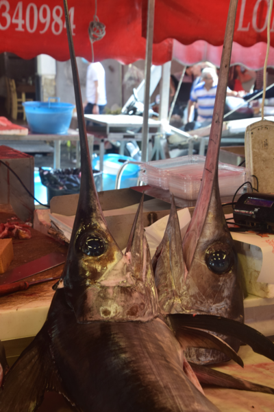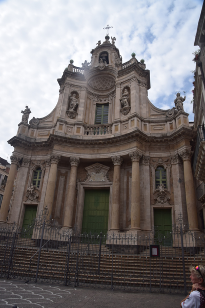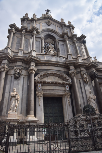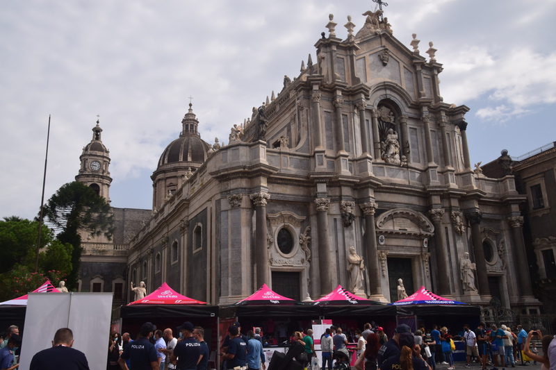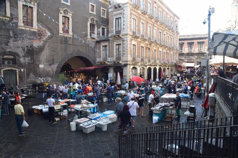 Heute steht die Erkundung von Catania auf dem Programm und so nehmen wir unsere Fahrräder und los geht es. Als erstes besuchen wir den Fischmarkt und den sich anschließenden Gemüsemarkt. Die Fahrräder schließen wir unter einer Brücke in der Nähe des Eingangs zum Fischmarkt an, die Stadt erkunden wir zu Fuß. Wir wollen auf direktem Weg zum Dom, was unser leider durch unzählige Absperrungen verwehrt wird – der Giro d’Italia startet hier heute eine Etappe. Also erkunden wir zunächst die entfernteren Sehenswürdigkeiten wie: Chiesa di San Franceso d’Assisi, das Benediktinerinnenkloster San Benedetto, das Kloster San Nicolò l’Arena, vorbei am Amphitheater und die Basilica Collegiata. Über die Piazza Università kommen wir zum Piazza Duomo. Die Kathedrale ist vormittags bis 12.00 Uhr und nachmittags erst ab 16.00 Uhr geöffnet. Da wir, wegen des Giro so spät sind, ist sie geschlossen und bis 16 Uhr ist es noch lange, so dass wir von einer Besichtigung absehen. Zurück geht es wieder über Teile des Fischmarktes – es sind noch viele Stände geöffnet und so decken wir uns doch noch mit Fisch – und zwar Thunfisch und Muscheln, ein. Nachdem wir nun fast 5 Stunden in der Stadt waren, treten wir die Rückfahrt an. Zurück bei „Gretchen“ geht es noch vor der „Kaffeepause“ zum Baden.