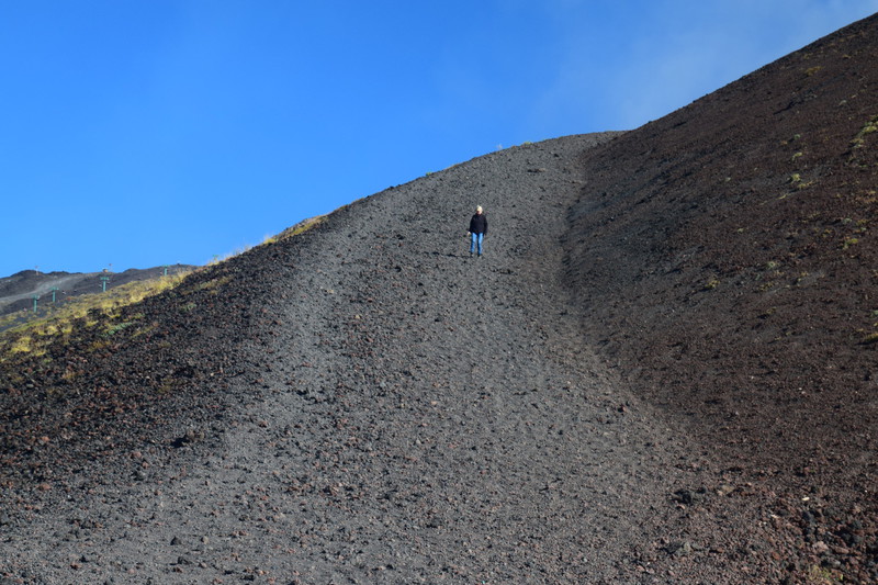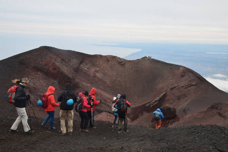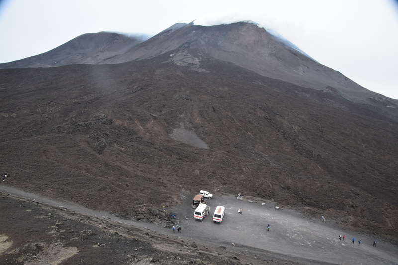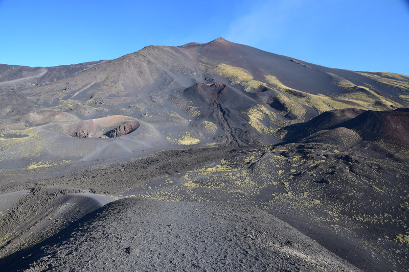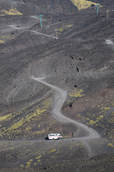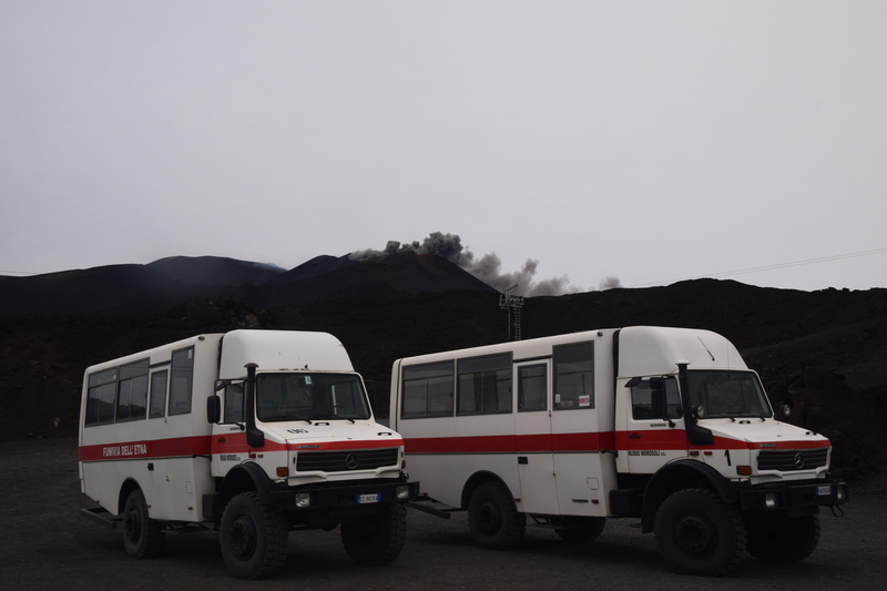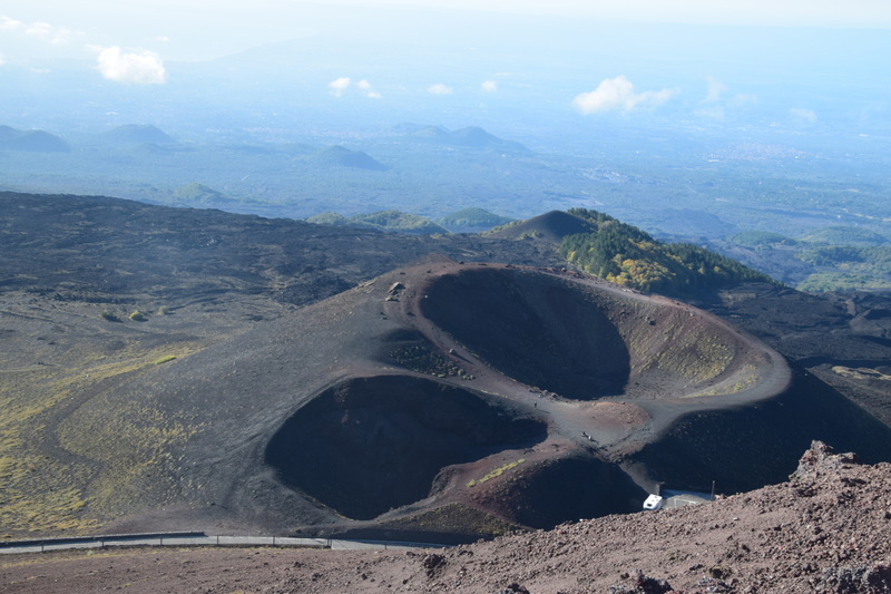 Um 12.30 Uhr – nach Stopp-and-Go in Catania, kommen wir auf dem Parkplatz des Rifugio Sapienza an. Wir ziehen lange Hosen, Jacken und Wanderschuhe an und los geht es zur Gondel. Wir buchen ein AI-Ticket, d.h. mit der Gondel hoch auf 2.500 m und anschließend mit einem geländegängigen Bus zum 3.000m hoch gelegenen Torre Filosofo. Jetzt beginnt eine geführte Wanderung, der Blick auf den aktiven Ätna ist überwältigend. Lt. unserem Führer spuckt er alle 2 Minuten eine schwarze Rauchwolke mit Gestein aus. Die schwarzen Wolken sind beeindruckend, der Wind hier ob bläst kräftig und es hat gerade mal 6° - um es in Worte zu fassen, es ist ungemütlich hier oben. Trotzdem sind wir froh, dass wir die Tour gemacht haben. Die Gondelbahn hat wegen des starken Windes den Betrieb eingestellt und so fahren wir mit dem Geländebus hinunter zum Parkplatz – um es in Marios Worte zu fassen – toll, siehst du wir brauchen einen Allrad ?. Wir bummeln an Souvenirgeschäften vorbei und wandern noch zum 1986 ausgebrochenen Krater Silvestro. Als wir diesen umrundet haben besuchen wir eine kleine Bar/Souvenirshop und trinken ein Vulkano-Bier. Wir bekommen zum Testen einen Schnaps mit 70 Umdrehungen und einen superfeinen Pistazienlikör. Wir kaufen zwei kleine Fl. Likör und eine kleine Fl. Feuerwasser (je 6,- €) und bezahlen für unser Vulkano-Bier, je Fl. nochmal 6,-€. Die Überlegung Essen zu gehen schminken wir uns angesichts der Preise ab – wir kochen selbst. Sitzen mit einem grandiosen Blick auf die unter uns gelegene Ebene und lassen „Gretchen“ vom Wind durchpusten!