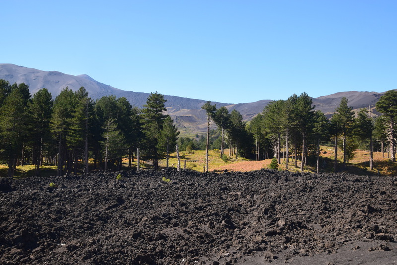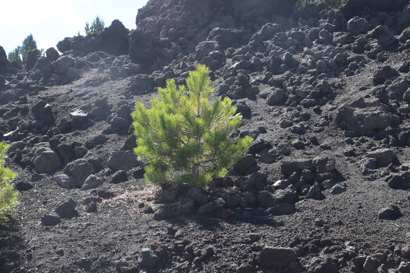 Mario wacht in den frühen Morgenstunden auf, es ist kalt er macht die Heizung an!! Heute früh machen wir noch eine Kraterwanderung hoch zum Krater La Capannina, der 2001 entstanden ist. Der Aufstieg ist nicht wirklich lang, aber sehr steil. Oben angekommen haben wir angesichts eines strahlend blauen Himmels mit Sonnenschein einen tollen Blick auf die tiefer gelegenen Krater. Wir fahren weiter und kommen bei Zafferana Etnea an den Osthang des Ätnas. Von hier geht es in den Naturpark Ätna Nord. Wir machen Stopp beim Rifugio Citelli und fahren weiter zum Piano Provenzana (der Hotspot des sizilianischen Skisports). Diese Seite des Ätnas ist mehr mit erkalteten Lavaströmen übersät und hat keine so großen Krater, aber fast egal wo wir sind, wir sehen ihn eine Rauchwolke ausspucken. Überall gibt es Reben – wir wollen Wein kaufen (vergebens, wir sind wieder einmal zur falschen Uhrzeit im Bereich der Weingüter). Egal wo wir hin kommen – alles ist zu! Über das mittelalterliche Randazzo (wo wir einen Bummel machen) geht es nach Bronte. Bronte gilt als das Mekka des Pistazienanbaus, es ist immer noch Siesta – und auch hier ist ein Einkauf nicht möglich ☹ - schlechtes Timing. Jetzt machen wir uns auf die Suche nach einem Übernachtungsplatz - im Reiseführer ist das „Weingut Fontana del Cherubino“ angepriesen, es soll ein Pool geben und man soll Produkte aus eigener Herstellung kaufen können sogar Essen am Abend soll möglich sein. Wir geben die Koordinaten ins Navi, und sind an der Zufahrt zum Weingut bereits vorbei gefahren – kein Problem das Navi findet einen anderen Weg. Es wird eng, sehr eng – in einer Kurve steige ich aus, da der Weg nicht einsehbar ist – es geht steil hinab. Ich gehe zurück, sage Mario, dass es meiner Meinung nach für uns zu steil und zu eng ist. Mario zweifelt und schaut ums Eck – sein Kommentar: Was hast du denn, ist doch eine normale Straße. Also wird gefahren, noch einmal links abbiegen und wir sind da. Die freundliche Jasmine begrüßt uns, ja wir können hier stehen – Essen leider nicht das Restaurant ist geschlossen. Sie zeigt uns wo wir stehen können (habe ich schon erwähnt, dass mir alles zu eng ist und Mario nicht?)! Also rauf auf den Platz und wir stehen zugegebenermaßen sehr schön und genießen die Ruhe. Jasmine führt uns noch über das Gelände und erklärt bzw. zeigt uns, was alles angebaut wird (Zitronen, Orangen, Kakteen, Oliven, Granatapfel, Rosmarin, Lavendel und vieles mehr). Wir drehen noch eine Runde über das sehr große Gelände, kehren zurück zu „Gretchen“ und machen es uns gemütlich. Traumhaft – wir stehen ganz alleine!