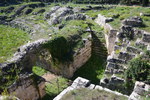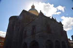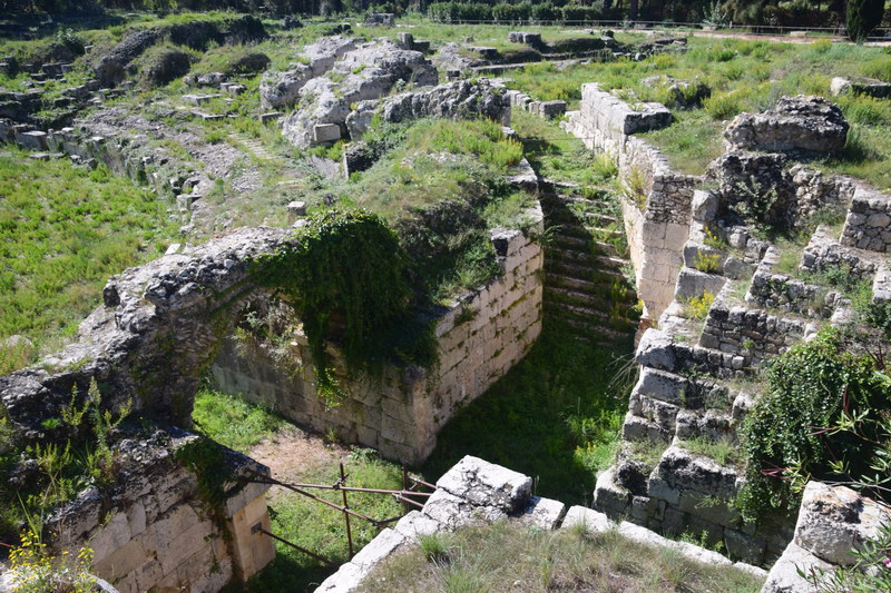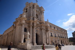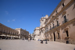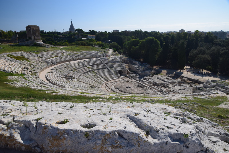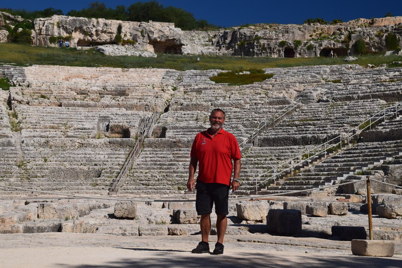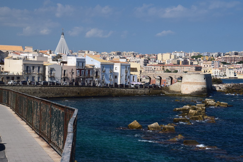 Heute fahren wir ein paar Kilometer zurück nach Syrakus, hier wollen wir im Hafen stehen. Wir fahren den Hafen an, aber für Womos ist das Stehen hier nicht erlaubt. Wir überlegen, wegen Nachsaison, trotzdem hier zu parken. Wir gehen das Risiko eines teuren Strafzettels nicht ein und fahren den ausgewiesenen Stellplatz an, dieser ist sehr teuer, aber auch relativ zentral. Da die Sehenswürdigkeiten in der Stadt weit auseinanderliegen, machen wir die Tour mit den Rädern. Direkt am Weg liegt die auffällige Kirche Santuario d. Madonna, die im Inneren recht schmucklos wirkt, aber am Mittelpunkt eine gigantisch Höhe aufweist. Von hier bis zum archäologischen Park „Neapolis“ sind es nur wenige Minuten. Die Fahrräder werden angeschlossen und wir machen uns zu Fuß auf den Park mit seinen vielen Ausgrabungen zu erkunden. Die Grotta die Gordari, das Ohr des Dionisio, das Teatro Greco sowie die Arena sind die Höhepunkte dieser Erkundungstour. Jetzt durchqueren wir die Neustadt um in die Altstadt zu kommen, die auf einer Halbinsel liegt. Wir radeln, bzw. schieben unsere Räder an der Küste entlang bis zum Fort und dann kreuz und quer durch die Altstadt mit ihren verschiedenen Kirchen und dem Papyrusmuseum bis wir zum großen Domplatz mit seiner Kathedrale kommen. Nach einer Pause in einer Kneipe in einer der vielen Altstadtgassen machen wir uns auf den Rückweg zu „Gretchen“. Es ist inzwischen 15 Uhr und wir beschließen unsere Badesachen zu packen und an den kleinen Strand im Hafen zu fahren. Dort angekommen stehen 5 Womos auf dem Parkplatz und wir bedauern schon fast nicht hier geblieben zu sein. Doch noch während wir am Strand liegen kommt die Polizei angefahren und alle Womos müssen ihren Platz räumen – also haben wir doch richtig gehandelt. Abends machen wir uns wieder mit den Rädern auf den Weg in die Altstadt um Essen zu gehen – die Altstadtgassen sind mit Menschen gefüllt, und es ist ein reges Treiben. Zurück trinken wir neben „Gretchen“ noch ein Gläschen Wein und bekommen überraschend Besuch von einer kleinen schwarzen Katze, die unvermittelt auf Marios Schoß springt und es sich dort gemütlich macht..