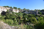 Heute ist die Anaposchlucht unser Zwischenziel. Die Straße ist eng, aber doch gut zu fahren, es spitzt sich allerdings vor dem Eingang der Schlucht zu, die Parkplätze entlang der Straße sind alle schon belegt. Mario schickt mich vor um zu schauen ob es für uns eine Wendemöglichkeit gibt – ein Mann, der am Eingang zur Schlucht steht winkt mir zu und bedeutet mir, dass er hier, ganz vorne wenden kann, ich vertraue ihm und winke Mario nach vorne. Dieser freundliche Herr stellt sich hinter unser „Gretchen“ und ich stelle mich vorne hin und so winken wir Mario vor und zurück, bis er es geschafft hat umzudrehen. Wir fahren gut einen Kilometer zurück bis wir einen geeigneten Platz zum stehen gefunden haben. Nun beginnt unsere Wanderung, am Eingang werden unsere Namen und die Uhrzeit sowie unsere Körpertemperatur notiert. Bei schönstem Sonnenschein und 33° wandern wir knappe 3 Stunden durch die Schlucht immer wieder vorbei an kleinen Badegumpen, die alle mit Menschen belegt sind. Auf dem Rückweg finden wir dann auch eine kleine Stelle, an der wir unsere Arme und Beine im frischen Nass abkühlen. Zurück versuchen wir erst einmal frische Luft in unser Auto zu bekommen und machen ein kleines Vesper. Los geht es – in eine schmale Straße, hier steht zum Glück am Anfang ein Mann der uns abwinkt – wir kommen hier nicht durch und so hilft es Mario beim Wenden, in dem er ihn hin und her dirigiert. Wir fahren zurück auf die Hauptstraße und fahren nach Sortino, von wo aus wir nach Noto fahren wollen. Doch die Straßen werden zu eng und so beschließt Mario schweren Herzens zurück in Richtung Syrakus zu fahren. Es ist schon 17 Uhr als wir in Avola ankommen und so suchen und finden wir einen Stellplatz/Parkplatz mit Meerblick. „Gretchen“ abstellen und Baden!!! Heute gibt es zum Abendessen die Reste vom Freitag ?.