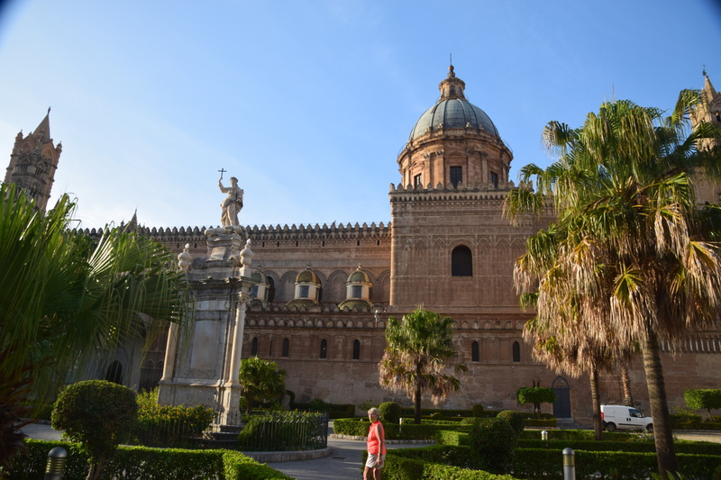 Wir verlassen, nach einem morgendlichen Bad, unseren schönen Badestrand und auf geht es nach Palermo. Der Küstenstreifen an dem wir entlang fahren ist wieder rauer, steiler und es gibt kaum mehr einen Strand – wir verzichten auf ein nochmaliges Bad. Auf der Suche nach einem Stellplatz, dessen Koordinaten wir eingegeben haben (dort gibt es keinen Platz) fahren wir ein paar Mal mehr oder weniger im Kreis rum. Dann fahren wir auf einen Parkplatz am Hafen, hier könnten wir auch über Nacht stehen. Wir haben uns (auch wegen Corona in Italien und der Schweiz) dazu entschieden uns heute schon nach einer Fähre zu erkundigen. Nach einigem Hin und Her bei zwei Reedereien buchen wir eine Fähre die noch heute Nacht Palermo verlässt. Als das erledigt ist machen wir uns auf den Weg Palermo zu erkunden. Die Stadt bzw. Altstadt gefällt uns sehr gut und es melden sich Zweifel an, ob wir die Fähre nicht doch zu früh gebucht haben ☹. Aber gut – Palermo sieht uns wieder!!!