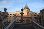 Unser erster Halt ist in Marsala, wo wir einen ausgiebigen Bummel durch die Altstadt machen. Der angepriesene Fischmarkt war enttäuschend – da fast nicht vorhanden. Dafür haben wir Arancini probiert, die sehr lecker waren. Unser Weg führt uns, in der Hoffnung eine Badestelle zu finden, wieder ans Meer. Wir fahren vorbei an den Salinen mit ihren historischen Salzmühlen. Einen Badeplatz finden wir, auch vor dem Hintergrund, dass sich die Sonne etwas versteckt, nicht. Die Lust zur Isola Grande durch das Wasser zu laufen, vergeht uns, angesichts des Windes und der nicht gerade hohen Temperaturen ebenfalls. Wir suchen uns einen Weg entlang der Küste (endlich wird die Straße wieder einmal so eng, dass unser Gegenverkehr zurücksetzen muss ?bis kurz vor den Flugplatz von Trapani. Dort müssen wir dann wieder, zu Marios Leidwesen, auf der Hauptstraße weiter fahren. In Trapani angekommen fahren wir als erstes zu Seilbahn, die uns in das auf das 800 m hoch gelegene Bergdorf Erice bringt (selbstverständlich ohne „Gretchen“). Wir durchwandern das Bergdorf, das man wirklich gesehen haben sollte. Besteigen als erstes einen Glockenturm, von dem aus man einen grandiosen Ausblick auf die Stadt Trapani, das Meer und die umgebende Landschaft hat. Wir besuchen den Dom sowie die restaurierten Kirchen S. Martino und S. Giulliano – alle drei ein wirklicher Augenschmaus!! Nach ca. 2 Stunden geht es wieder mit der Seilbahn ins Tal und wir suchen uns einen Stellplatz. Wobei wir letztendlich wieder einmal an der Hafenmole landen. Von hier aus haben wir einen schönen Blick auf die Stadt, die wir Morgen besichtigen werden!