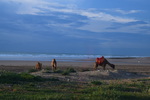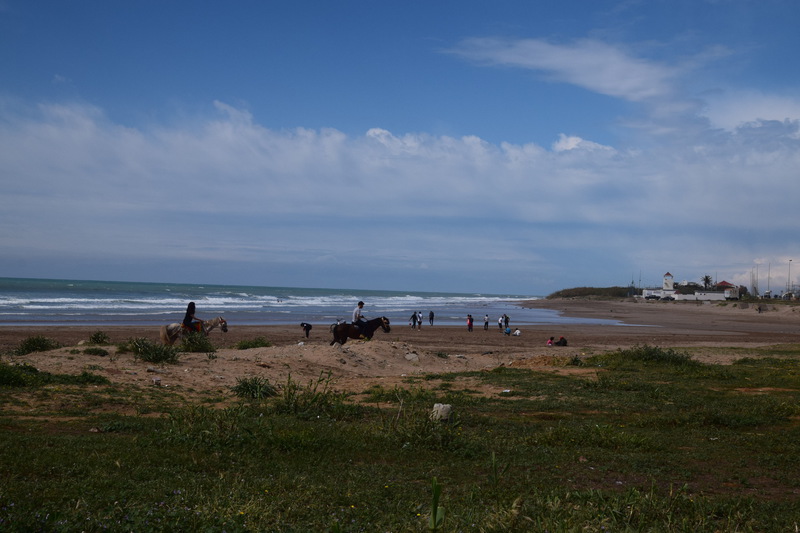 Wir verlassen Asilah in Richtung Rabat – fahren aber nicht auf direktem Weg dorthin. Es geht erst einmal ein kurzes Stück in’s Landesinnere. Nach ca. 20 km biegen wir von der Hauptstraße auf unsere erste Schlaglochstraße in diesem Urlaub. Sie führt uns über ca. 3 km zu den Cromlech von Msoura. Dies sind zwei Steinkreise bestehend aus Monolithen, der höchste von ihnen misst 6 m. Dies ist unsere erste kulturelle Besichtigung. Danach geht es über Dörfer, überall ist ein Gewusel und Markt. In Ksar-el-Kebir machen wir Halt, bummeln über bzw. durch den Markt und gönnen uns ein Mittagessen. Kinder und auch Erwachsene am Straßenrand winken uns freundlich und vielleicht auch etwas neugierig zu. Überall sind Esels- und Pferdekarren unterwegs. Am Straßenrand werden Kartoffeln und jede Menge Obst angeboten. Wir fahren wieder auf die Nationalstraße wieder Richtung Küste. Eigentlich wollen wir einen Übernachtungsplatz vor der Großstadt Rabat, dies gelingt uns leider nicht. Also erreichen wir Rabat und suchen den Platz, der in unserem Womo-Führer mit GPS-Daten angegeben ist – erfolglos, das GPS führt uns mitten in die Stadt. Als wieder raus und auf der Küstenstraße entlang bis wir einen Platz mit Blick auf das Meer finden – und wir auch über Nacht stehen dürfen.