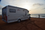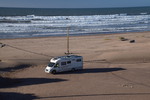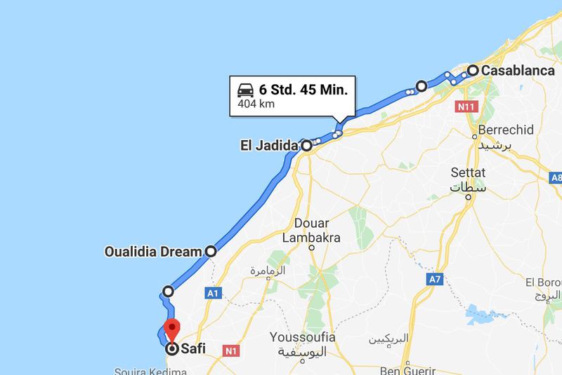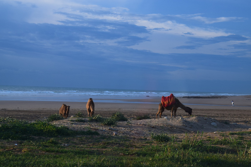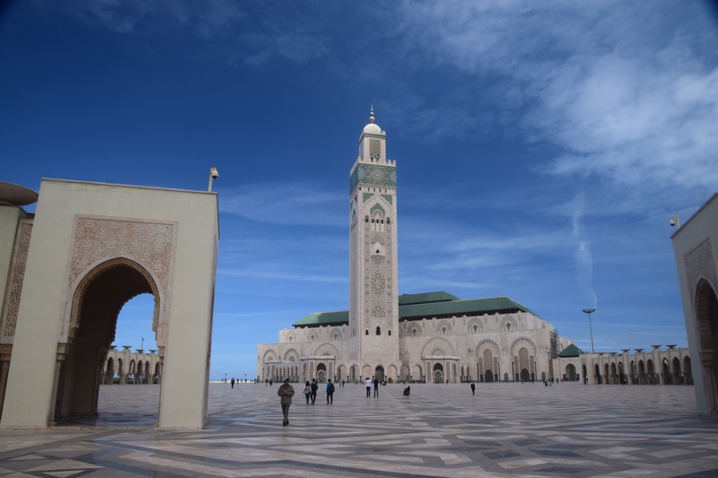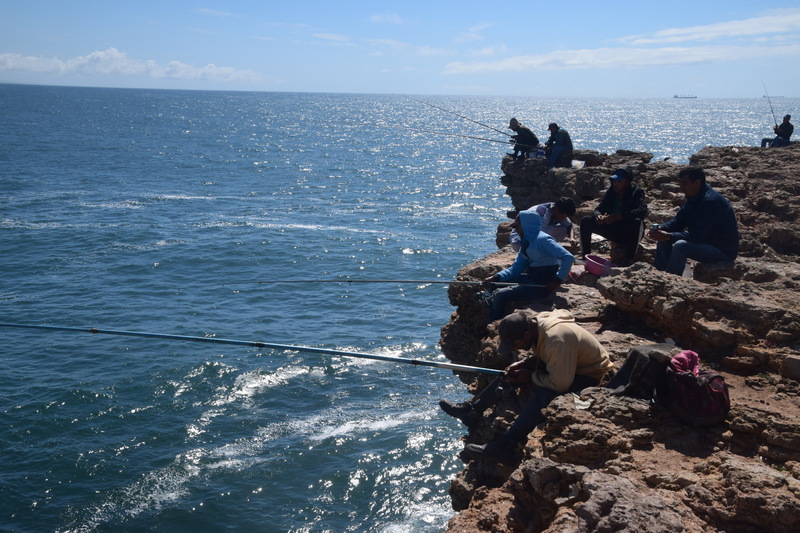 Auf geht’s nach Casablanca – wir wollen zumindest durchfahren, bleiben, etwas anschauen, eigentlich nicht. Im dichten Straßenverkehr von Casablanca fährt neben uns ein PKW mit 4 jungen Männern, sie machen das Fenster auf und rufen uns auf Deutsch „herzlich willkommen“ zu. Wir haben inzwischen unsere Meinung doch geändert und suchen einen Parkplatz, den wir zufällig erst bei der Hassan-II-Moschee, die 5.größte Moschee der Welt, finden. Wir spazieren auf das riesige Gelände der Moschee, die direkt am Atlantik liegt. Wir dürfen als Nichtmuslime die Moschee nur mit einer Führung betreten – wir entscheiden uns gegen eine Besichtigung und auch gegen einen Bummel durch die Medina – wir wollen weiter, von Großstadt haben wir im Moment genug. Nach ca. 150 km entlang der Küste treffen wir auf eine Straße, die zum Meer führt, an deren eine Platz zum Stehen. Es ist 15.00 Uhr und wir beschließen, den Tag hier ausklingen zu lassen. Nach einiger Zeit gesellt sich ein junger Mann aus Heidelberg zu uns, der aber nachdem wir uns lange unterhalten haben, wieder abfährt. Wir sitzen bis nach 18 Uhr draußen – haben sogar zum ersten Mal auf unserer Reise unseren Tisch ausgepackt. Während ich Abwasch mache kommt eine Gruppe junger Männer, sie wollen auf dem Platz Fußball spielen und bitten uns, unser Gretchen etwas mehr an der Seite zu parken, damit nichts passiert. Dieser Bitte kommen wir gerne nach – jetzt haben wir durch das Fußballspiel eine ungewöhnliche Unterhaltung. Gegen 21 Uhr klopft es an unsere Tür und wir werden freundlich aber bestimmt aufgefordert den Platz zu verlassen. Also fahren wir die 18 km bis Azemmour und finden etwas außerhalb der Stadt einen Platz (zum Glück, sehr ruhig).
