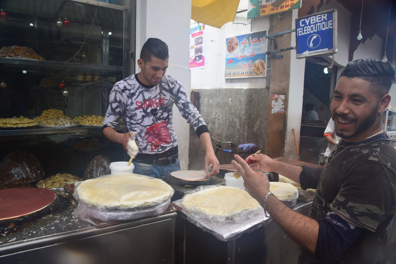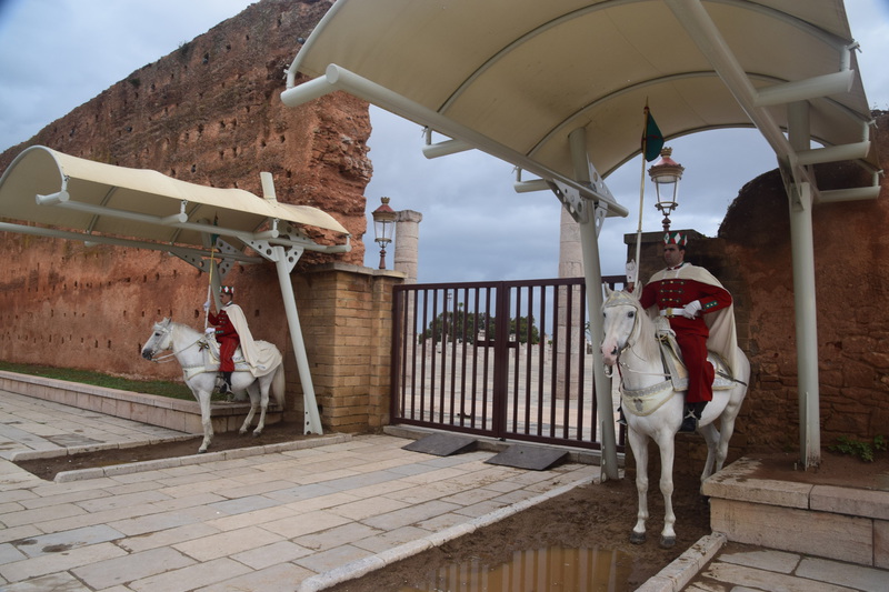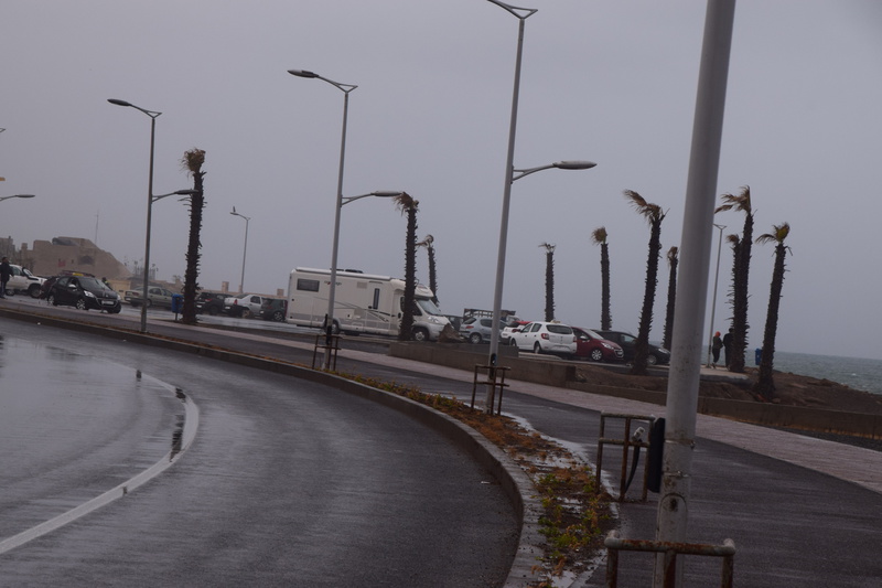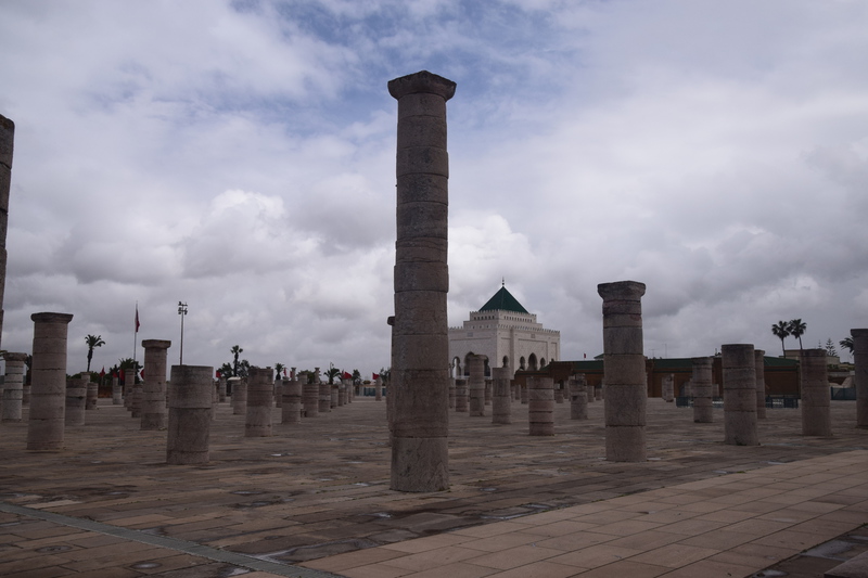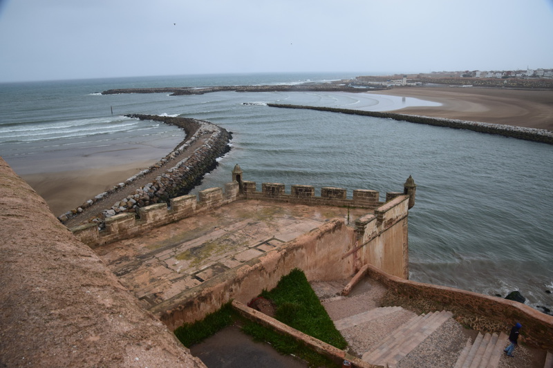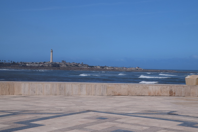 Heute Morgen ist es grau – und noch während wir frühstücken fängt es an zu regnen. Wir verlassen unseren Übernachtungsplatz und fahren auf einen Parkplatz in der Nähe der Altstadt, hier warten wir erst einmal bis es etwas aufhört zu regnen. Gegen 12 Uhr starten wir unsere Besichtigungstour in Regenkleidung – die ist auch bitter nötig, denn schon bei Erreichen der Festungsmauer Oudaia-Kasba sind wir nass. Der Bummel durch die Souks wird unterbrochen mit einer Teepause (der Tisch an dem wir sitzen steht einigermaßen trocken). Die Teegläser sind so heiß, dass man sie fast nicht anfassen kann. Der Regen lässt nach und wir gehen durch den „Garden von König Hassan“ zum Mausoleum Mohammeds V, mit den Säulenstümpfen und dem Hassan-Turm. Leider ist eine Besichtigung nicht möglich, alle Tore sind geschlossen und es wimmelt von Polizei und Militär. Kurz darauf finden wir die wahrscheinliche Erklärung: an der Altstadtmauer findet eine Demonstration statt (wofür oder wogegen ist für uns nicht ersichtlich). Inzwischen scheint die Sonne und wir bummeln nach einem kurzen Einkauf zurück zu Gretchen und starten in Richtung Casablanca. Nach mehreren erfolglosen Versuchen einen Standplatz am Meer zu finden, werden wir in Mohammedia (wir wollten schon den Campingplatz anfahren) fündig. Hier stehen wir nun mit Blick auf die Wellen des Atlantik und genießen den Abend.