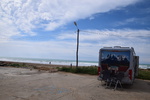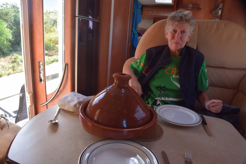 Wir verbringen den Tag in Oualidia. Das Bad im Meer findet leider nicht statt, es ist zwar sonnig, aber auch stürmisch. Wir holen unsere Fahrräder raus und machen eine erste kurze Radtour (10 km). Danach ist Nichtstun, nur unterbrochen von einem Spaziergang zum Strand, angesagt. Wir sitzen etwas Windgeschützt durch Gretchen in der Sonne. Direkt neben unserem Stellplatz beginnt ein Gruppe junger Schlagzeuger Musik zu machen – eine angenehme Abwechslung. Bei Ali haben wir heute Morgen Essen bestellt: Gemüse, Kartoffeln und Hühnchen, gekocht in einer Tajine (alles zubereitet von seiner Frau). Um 18 Uhr kommt er pünktlich angefahren und liefert unser Essen – es schmeckt super lecker (2 Stunden später holt er die leere Tajine wieder ab).