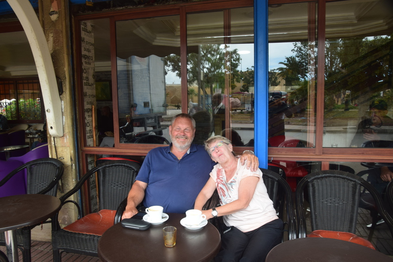 Um 10.00 Uhr machen uns zu Fuß auf den Weg Asilah zu erkunden. Als erstes geht es in die Medina mit ihren engen Gassen und blau-weißen Hausfassaden. Danach weiter in die Neustadt mit den vielen Obst- und Gemüseständen. Nach drei Stunden haben wir genug gesehen und wir trinken in einem Café am Straßenrand ein Glas Pfefferminztee. Inzwischen ist es recht warm geworden und Mario kann es nicht erwarten im Atlantik schwimmen zu gehen. Nichtstun ist angesagt, wir sitzen in der Sonne und lesen – schön. Spätnachmittag machen wir uns wieder auf den Weg in die Neustadt um essen zu gehen. Das Essen muss verdaut werden und so kommt es zu einem zweiten Spaziergang durch die Medina und in den Hafen – wo es einen schönen Sonnenuntergang zu sehen gibt. Zurück bei Gretchen gibt es noch ein Gläschen Wein – schließlich haben wir Urlaub!
