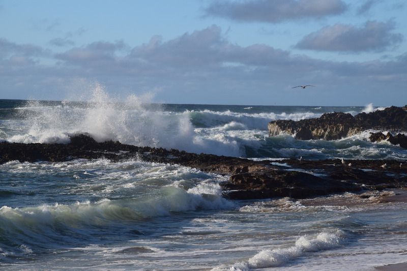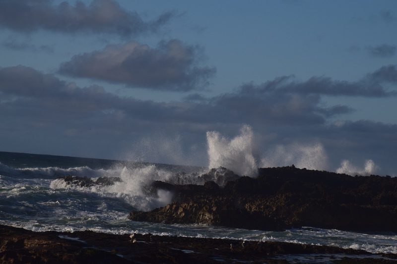 Wir fahren in die Stadt – gestern Abend haben wir ja nichts mehr gesehen, stellen uns an die Stadtmauer und besuchen die Altstadt und wandern auf der Stadtmauer rundum. Nach dem Genuss von Kaffee verlassen wir Azemmour um El Jadida zu besuchen. Obligatorisch machen wir den Bummel durch die Medina und die Neustadt und besichtigen die „Citerne Portugaise“ (für hiesige Verhältnis teurer Eintritt 6,- € p.P. ) – aber wirklich sehenswert. Unser Mittagessen besteht aus einer Paella und einem Meeresfrüchtesalat – lecker. Wir fahren die Küstenstraße entlang, die Ausblicke auf Steilküste und schäumenden Atlantik veranlassen uns zu einigen Stopps. An der Küste sind viele Salinen, außerdem ist die Gegend sehr fruchtbar und das ganze Gebiet ist landwirtschaftlich geprägt. Unser Ziel für heute ist Oualidia wo wir auf einem Wohnmobilplatz stehen (hier schickt uns keiner weg). Wir haben ein Problem mit unserer Toilette – das wird als erstes behoben wird. Anschließend wandern wir zur Küste, die uns einen atemberaubenden Anblick bietet. Auf dem Rückweg zu „Gretchen“ bleiben wir noch bei einem Austernverkäufer stehen und essen jeder eine Auster ?.