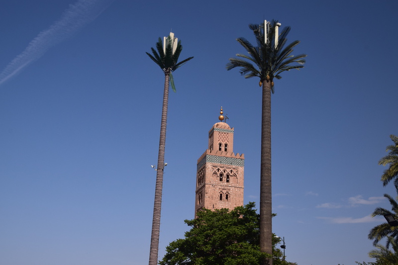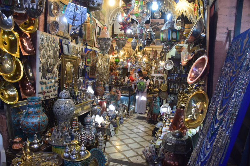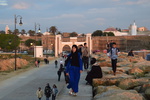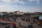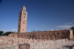 Unser heutiges Ziel ist Marrakesch. Erst einmal geht es entlang der traumhaften Steilküste bis Safi. Von da an geht es ins Inland, ca. 160 km. Die Tour führt uns durch flaches, relativ ödes Land, nur unterbrochen von kleineren Dörfern – eine recht langweilige Strecke. Dies ändert sich einige Kilometer vor Marrakesch – der Verkehr nimmt zu und als wir Marrakesch erreichen, wird es sogar ziemlich eng. Wir haben den Tipp bekommen, direkt bei der Koutoubia-Moschee auf den Parkplatz zu fahren. Die Zufahrt zum Parkplatz sehen wir zu spät und so müssen wir im dichten Verkehr eine Möglichkeit finden wieder zurück zu fahren. Da um die Moschee alles Einbahnstraßen sind, müssen wir ein zweites Mal eine Möglichkeit finden um dann auf den Parkplatz zu gelangen. Geschafft ?! Hier in Marrakesch scheint die Sonne und es hat 39° - wir machen uns auf den Weg und haben mit der Koutoubia-Moschee mit ihrem 77 m hohen Minarett einen schönen Anfang. Unweit der Moschee beginnen beim Djemaa el Fna, ein großer Platz mit Gauklern, Geschichtenerzählern und vielem mehr, den Souk. Wir bummeln durch die Gassen, in denen es erstaunlich kühl ist, es gibt vieles zu bestaunen. Bei Einbruch der Dunkelheit besuchen wir ein Restaurant auf dessen Dachterrasse wir zu Abendessen und einen wunderschönen Blick über den Platz haben. Die Stände auf dem Platz haben sich verändert, wo vorher allerlei Nippes präsentiert wurde, stehen jetzt Tische und Bänke, die zu den unterschiedlichen fahrbaren Garküchen gehören – morgen werden wir hier und nicht in einem Restaurant essen! Wir verlassen das Getümmel, setzen uns in ein Straßencafé und beobachten den lebhaften Verkehr: Autos, Mopeds, Fahrräder, Fußgänger und Caleche (meist prachtvolle Pferdekutschen).