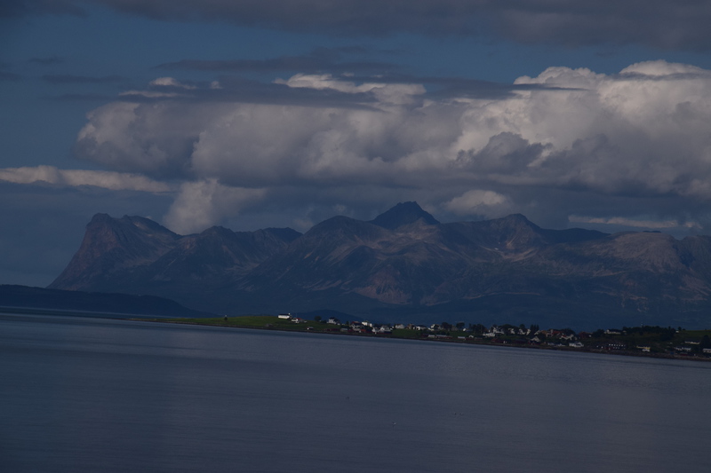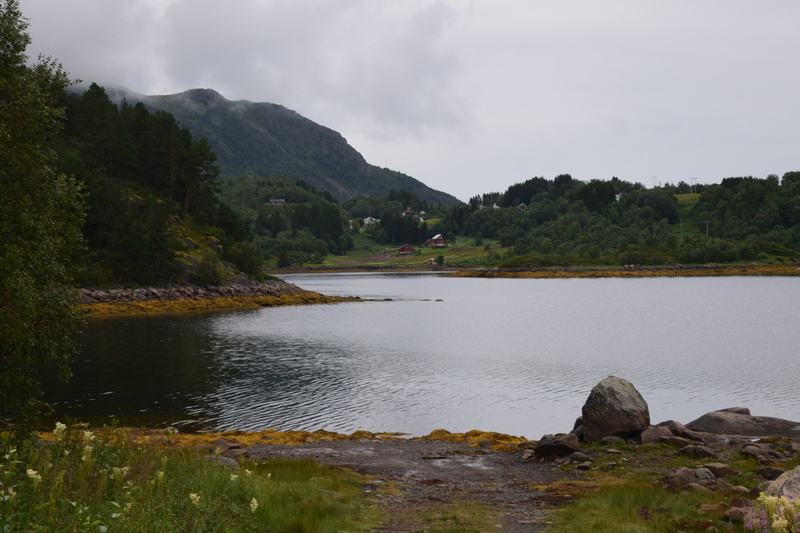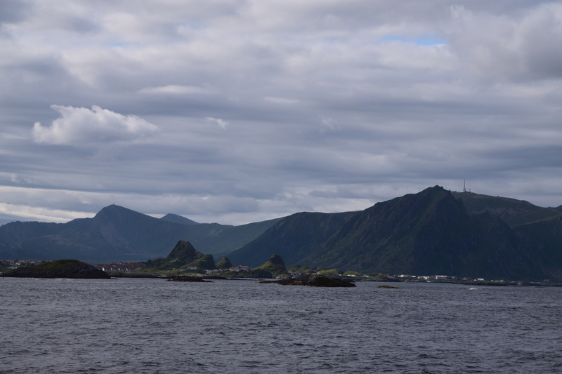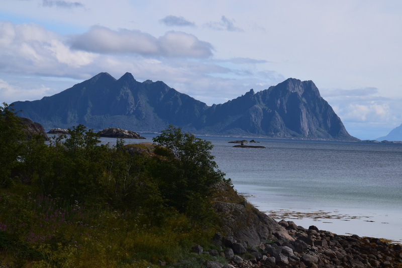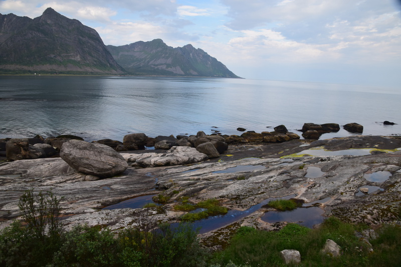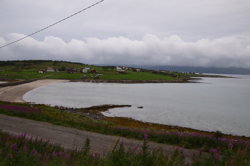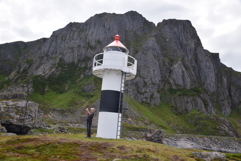 Bei dichter Bewölkung starten wir in den Tag. Nach ca. einer Stunde Fahrt finden wir einen Parkplatz mit einem schönen Blick in den Fjord und so machen wir Kaffeepause. Dabei sehen wir unterhalb des Parkplatzes auf einer großen Felsfläche einen Angler, der einen Fisch nach dem anderen aus dem Wasser holt und so faßt Mario den Entschluss, dem Angler Gesellschaft zu leisten und es auch zu versuchen – erfolglos ☹. Der Angler, ein Norweger, hat Mitleid mit ihm und gibt ihm einen seiner Blinker (er meint, Marios Blinker sind zu leicht, sie sinken nicht genug ab) und siehe da, jetzt fängt auch Mario einen Fisch nach dem anderen. Nach einer guten Stunde hat er 8 Fische gefangen ?(unser Abendessen ist gesichert) und wir packen zusammen. Weiter geht es nach Harstad, wo wir einen Rundgang durch die Fußgängerzone und den Hafen machen. Wir fahren weiter, denn wir wollen die Kirche von Trondenes besichtigen, in der ein holzgeschnitzter Flügelaltar aus Lübeck steht. Wir kommen hin und freuen uns, an der Infotafel vor der Kirche ist angeschlagen, dass die Kirche bis 16.00 Uhr geöffnet ist und es ist gerade 15.45 Uhr. Dann doch die Enttäuschung, die Kirche ist heute schon ab 15.00 Uhr geschlossen. Wir fahren weiter zur „Adolf-Kanone“, aber auch dieses Militärgelände ist bereits für Besucher geschlossen. Nun setzen wir unseren Weg in Richtung Lofoten fort. Den Abend verbringen wir auf der Insel Hinnöya.