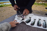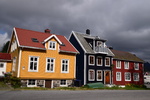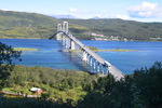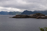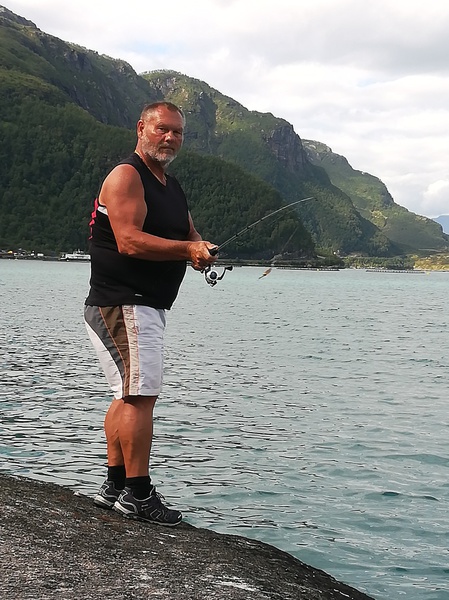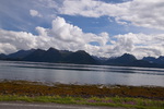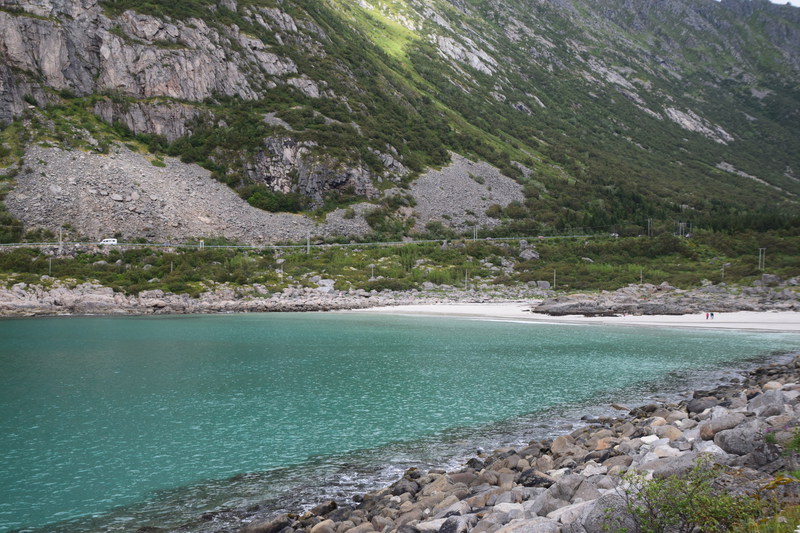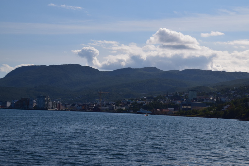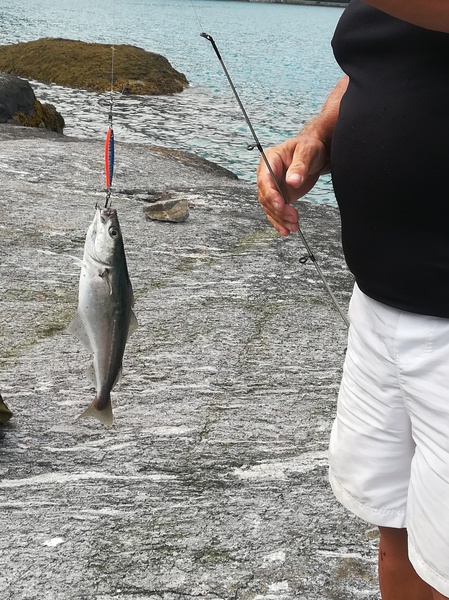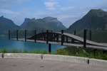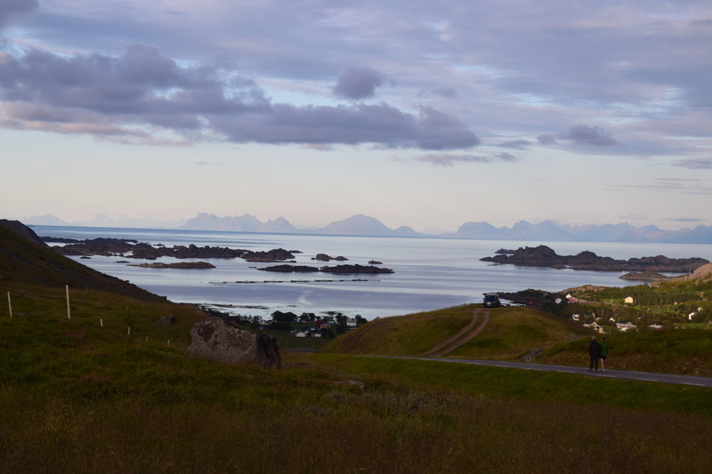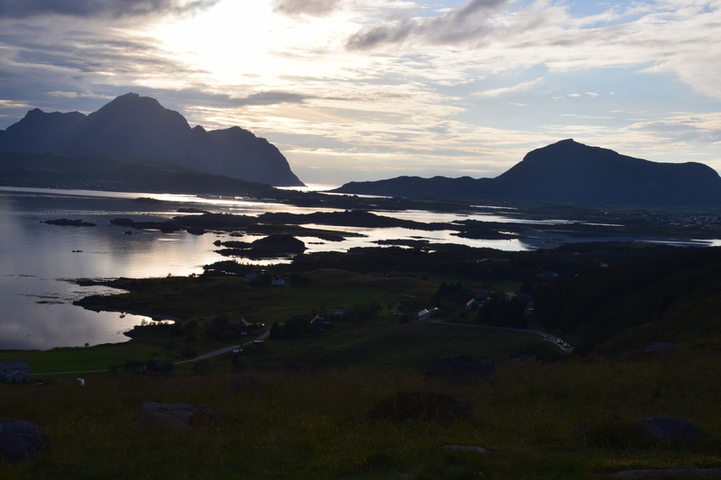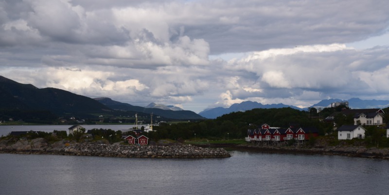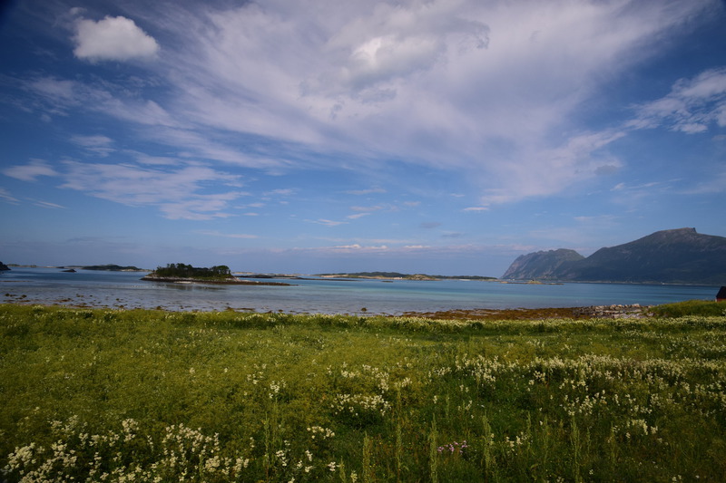 Bei dichter Bewölkung starten wir in den Tag. Nach ca. einer Stunde Fahrt finden wir einen Parkplatz mit einem schönen Blick in den Fjord und so machen wir Kaffeepause. Dabei sehen wir unterhalb des Parkplatzes auf einer großen Felsfläche einen Angler, der einen Fisch nach dem anderen aus dem Wasser holt und so faßt Mario den Entschluss, dem Angler Gesellschaft zu leisten und es auch zu versuchen – erfolglos ☹. Der Angler, ein Norweger, hat Mitleid mit ihm und gibt ihm einen seiner Blinker (er meint, Marios Blinker sind zu leicht, sie sinken nicht genug ab) und siehe da, jetzt fängt auch Mario einen Fisch nach dem anderen. Nach einer guten Stunde hat er 8 Fische gefangen ?(unser Abendessen ist gesichert) und wir packen zusammen. Weiter geht es nach Harstad, wo wir einen Rundgang durch die Fußgängerzone und den Hafen machen. Wir fahren weiter, denn wir wollen die Kirche von Trondenes besichtigen, in der ein holzgeschnitzter Flügelaltar aus Lübeck steht. Wir kommen hin und freuen uns, an der Infotafel vor der Kirche ist angeschlagen, dass die Kirche bis 16.00 Uhr geöffnet ist und es ist gerade 15.45 Uhr. Dann doch die Enttäuschung, die Kirche ist heute schon ab 15.00 Uhr geschlossen. Wir fahren weiter zur „Adolf-Kanone“, aber auch dieses Militärgelände ist bereits für Besucher geschlossen. Nun setzen wir unseren Weg in Richtung Lofoten fort. Den Abend verbringen wir auf der Insel Hinnöya.