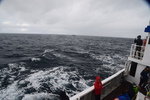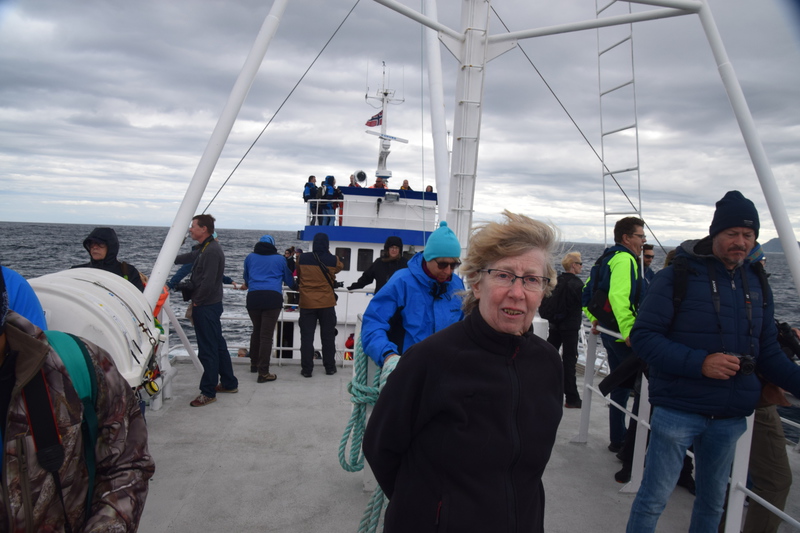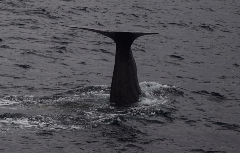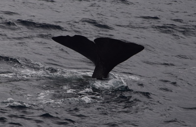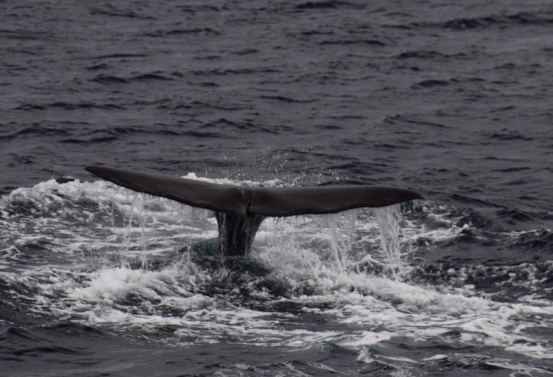 Es ist 9.00 Uhr als wir an der Buchungsstelle eintreffen – es ist viel Betrieb. Wir kommen an die Reihe und siehe da, die Reservierung vom gestrigen Abend hat funktioniert. Wir bekommen sogar angeboten schon um 11.00 Uhr mit aufs Schiff zu gehen, was wir auch machen. Vor der Schiffstour findet noch eine Führung durch das Museum statt, die sogleich beginnt. Ausgerüstet mit der warmen, dickgefütterten Jacke gehen wir an Bord. Bis an die Stelle, wo Wale gesichtet werden fahren wir eine gute Stunde, der Wind bläst und es gibt richtig gute Wellen. Nach einiger Zeit langsamer Fahrt, sieht man plötzlich eine Blase – wir fahren näher ran und der erste von drei Potwalen, die wir in einem Zeitraum von 2 Stunden sehen, taucht aus dem Wasser auf. Da sind die hohen Wellen und der kalte Wind vergessen – es ist einfach nur schön. Potwale können zwischen 30 und 120 Minuten tauchen und bleiben anschließend ca. 10 Minuten zum Luftholen an der Wasseroberfläche. Sie wiegen zwischen 60 und 80 Tonnen.