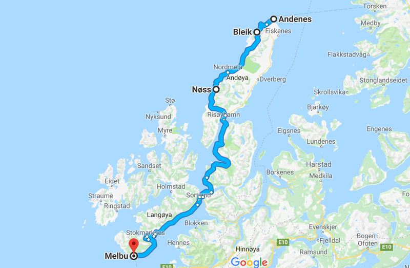 In Stokmarknes (Geburtsort der Hurtigruten) besuchen wir das Hurtigrutenmuseum und besichtigen das ausgemusterte Postschiff „Finnmarken“. Weiter geht es nach Melbu, hier verbringen wir die Nacht und gehen morgen auf die Fähre. Als wir ein Plätzchen gefunden haben backen wir einen Moltebeerkuchen!
