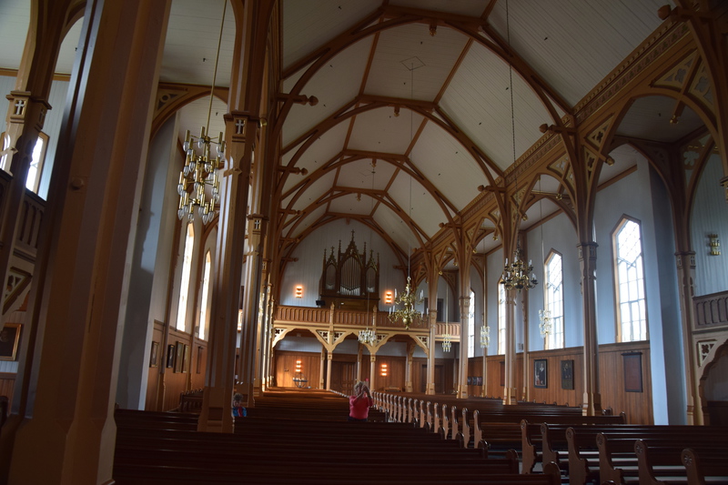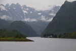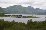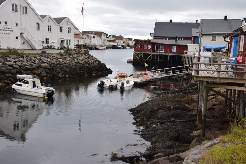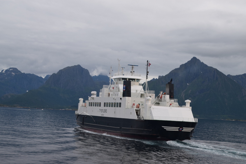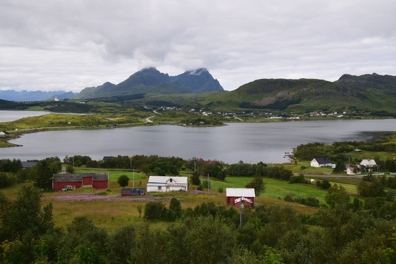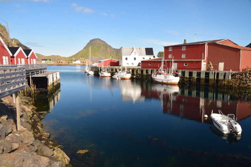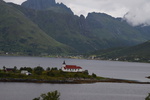 Kurz vor 10 Uhr geht unsere Fähre von Melbu nach Fiskebol – die Überfahrt dauert gerade mal eine halbe Stunde. Von Fiskebol geht es wieder auf die E10 und wieder (zum 2. Mal) nach Svolvaer. Von dort weiter nach Kabelvag, einem kleinen mittelalterlichen Fischerdorf mit der Lofotenkathedrale, einer der größten Holzkirchen Norwegens. Unser weiterer Weg führt uns nach Henningsvaer, das doch schon sehr touristisch geprägt ist, der Bummel durch den Ort hat sich trotzdem gelohnt. Nun weichen wir wieder von der Hauptroute ab und fahren auf einer kleineren Straße der anderen Inselseite entgegen. Diese ist nicht mehr durch steile Berge und Felsen sondern weite Felder, Landwirtschaft und Pferdezucht geprägt.