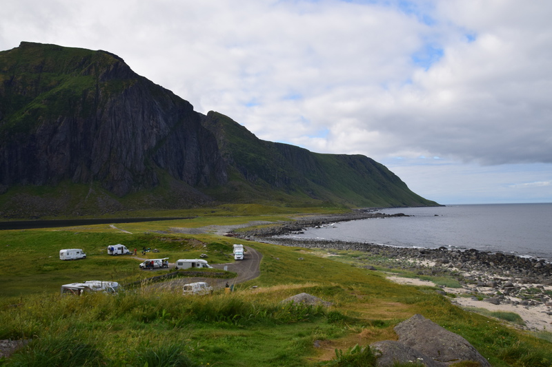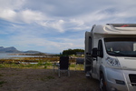 Wir verlassen Andenes und suchen uns einen Übernachtungsplatz, hierbei haben wir etwas Pech. Mario muss auf einem Weg umkehren und übersieht beim rückwärtsfahren einen Eckpfosten eines Tors und so haben wir jetzt an der linken Eckverkleidung einen Riß von 50 cm. ☹ Mario möchte am Ende der Tour auch noch etwas zu tun haben!