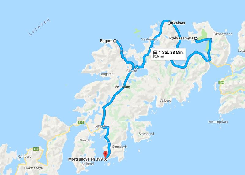 Es ist kalt geworden, so dass Mario heute morgen sogar die Heizung einschaltet. Wir verlassen die Halbinsel, fahren an der Küste entlang um den nächsten Abstecher zu machen – wir umrunden die nächste Halbinsel (eigentlich wollten wir dies mit Fahrrad machen – es ist uns jedoch zu kalt, die Wolken hängen tief). Nach der Umrundung kommt sogleich der nächste Abstecher und zwar nach Eggum. Hier machen wir eine knapp 2stündige Wanderung entlang der Felsenküste. Nun geht es nach Borg, wo wir das Wikingermuseum besuchen. Hier wurde ein Häuptlingshaus der Wikinger mit einer Länge von 83 m rekonstruiert. Bei Ausgrabungen wurden hier die Grundmauern gefunden. Wir wandern nach einem gut vorgetragenen Vortrag durch das Gelände bis zu einem See, auf dem Fahrten mit dem Wikingerschiff angeboten werden. Das Museum ist ein lebendiges Dorf, es gibt einen Schmiede, ein rekonstruiertes Bootshaus, es ist traditionelles Handwerk zu beobachten. Wieder auf der E 10 fahren wir vorbei an Leknes und auf einer kleineren Straße nach Mortsund, wo wir unseren heutigen Übernachtungsplatz direkt am Wasser finden.
