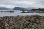 Wir haben uns entschieden, nicht den gleichen Weg zurück nach Svolvaer zu nehmen, sondern von Melbu mit der Fähre nach Fiskebol zu fahren. Unser Weg führt uns mit Unterbrechungen über Sortland nach Stokmarknes. Bevor wir Sortland erreichen gehen wir noch Moltebeeren pflücken. Diese wachsen auf einem moosartigen Untergrund – man läuft wie auf einer dicken Daunendecke.