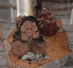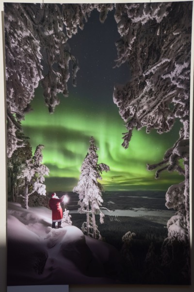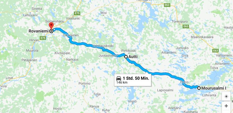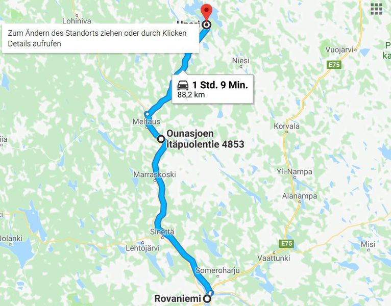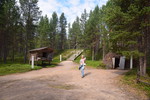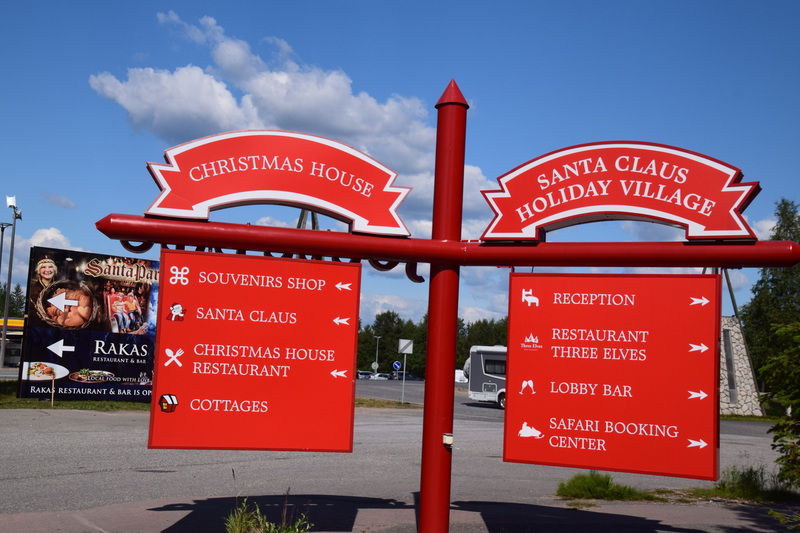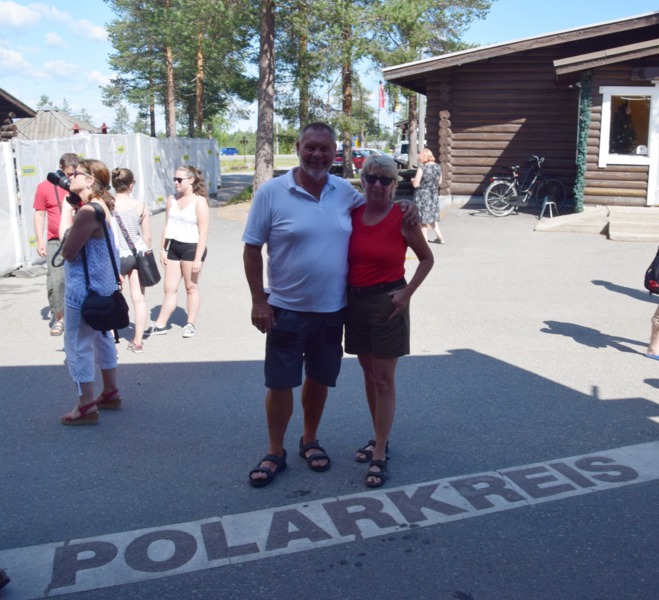 Während wir draußen frühstücken hören wir das Klappern, von Rentierhufen, diese kommen bis auf ca. 100 m an unseren Platz. Schnell holen wir Kamera und Handy und beginnen die Tiere zu fotografieren. Nach einem erfrischenden Bad im See starten wir in den Tag. Wir fahren nur wenige Kilometer bis zum Ort Posio, wo wir einkaufen und das Keramikmuseum besuchen. Nun geht es auf direktem Weg nach Rovaniemi, den Weihnachtsmann besuchen. Hier ist ein ganzes Urlaubsdorf entstanden und alles dreht sich um den Weihnachtsmann, der hier täglich anwesend ist. Man kann sich sogar mit ihm fotografieren lassen – haben wir auch getan, das Bild haben wir allerdings nicht gekauft – es sollte 40,-€ kosten und schön war es auch nicht. Wir stehen am Polarkreis und es hat 36° und puren Sonnenschein. Wir wollen noch baden und so suchen wir uns eine Badestelle am Fluß, Ouhasjoki .Einen Übernachtungsplatz finden wir dann auf dem Parkplatz beim Sportzentrum.