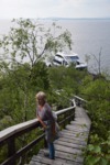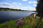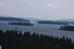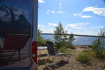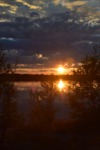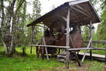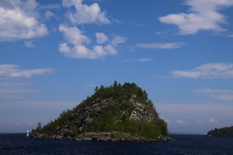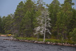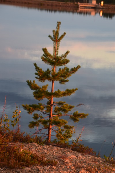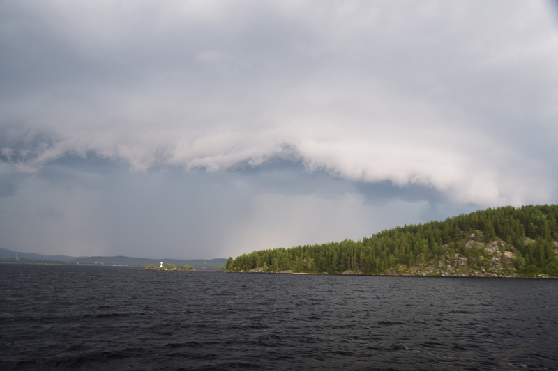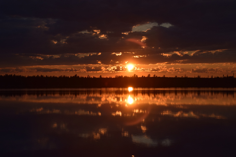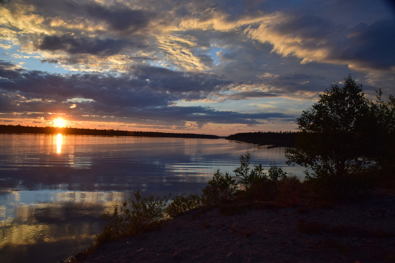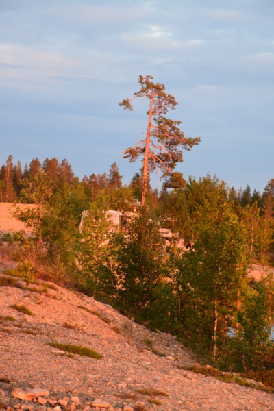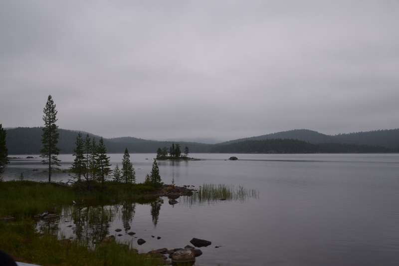Seit wir in Finnland sind haben wir keine richtige Dunkelheit mehr, kein Mond und auch keine Sterne. Jetzt haben wir seit 2 Nächten Mitternachtsonne (Sonnenauf- und Sonnenuntergang ist um 2 Uhr). Heute Morgen jedoch ist es eher grau – die Wolken hängen tief. Wir fahren bis nach Inari, wo wir das Sami-Museum besuchen. Eine umfangreiche Ausstellung zu den Samen, deren Leben und die Natur hier in Lappland – sehr beeindruckend. Der Ausstellung angeschlossen ist auch ein Freilichtmuseum. Hier werden die Winterhäuser gezeigt, die Sommerzelte, sowie Aufbewahrungshütten für Fisch, Fleisch und anderen Vorrat, sowie Fallen zur Jagd verschiedener Wildtiere. Das Wetter hat inzwischen aufgemacht und so beschließen wir eine Bootsfahrt auf dem Inari-See zu machen. Das Schiff fährt die Felseninsel Ukonkivi an, wo wir an Land gehen. Die Insel ist dem mächtigsten aller Götter, dem Gott des Donners gewidmet und gilt deshalb als heiliger Ort der Sami. Im übrigen ist der Inari-See der 2. Größte See Finnlands und an seiner tiefsten Stelle 100 m tief und hat eine Küstenlinie von über 3000km. Auf der Rückfahrt zu unserem Ausgangsort zieht ein Gewitter auf, der Himmel wird dunkel und wenig später öffnet er seine Schleusen. Auf dem kurzen Weg vom Schiff zu unserem „Gretchen“ werden wir richtig naß. Nun fahren wir für heute noch einige Kilometer um letztendlich an einer Bucht des Inari-Sees die eine Bootseinlassstelle hat, unser heutiges Quartier zu beziehen. Inzwischen scheint auch wieder die Sonne.