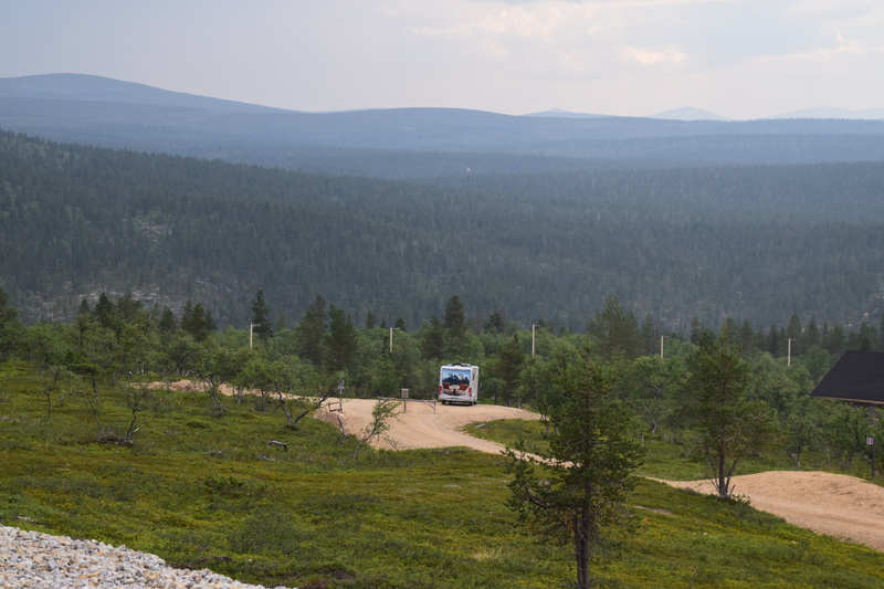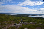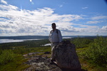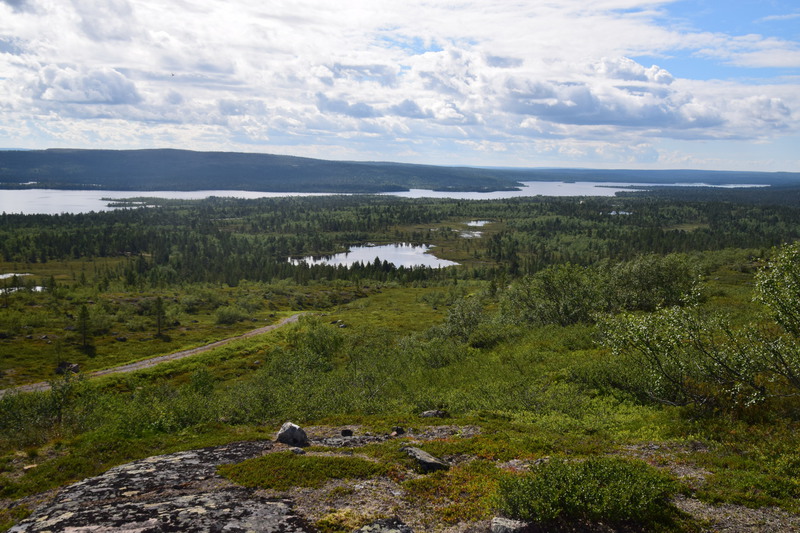 Heute ist unser letzter Tag in Finnland. Wir fahren einige Zeit entlang des Inari-Sees, danach haben wir auf unsere Strecke abwechselnd mal ein See auf der linken, dann wieder auf der rechten Seite. Die Straße ist meist durch Baumreihen von den Seen getrennt, um die Seen herum hat sich eine Moorlandschaft entwickelt. Bevor wir jedoch Finnland verlassen machen wir noch eine Wanderung auf einen kleinen Berg (bei uns würde man auch Hügel sagen) – die Aussicht ist herrlich. Bester Laune geht es weiter und wir überqueren nach dem kleinen Ort Näätämo die finnisch-norwegische Grenze. Wir werden angehalten und nach Alkohol und Zigaretten gefragt (Ausweise wollen sie keine sehen). Mario gibt an, dass wir Bier und Wein dabei haben. Die beiden jungen Zöllner wollen alles sehen, lassen sich die Garage aufmachen, zählen Bier und Wein, schauen in sämtliche Außenfächer und kommen schließlich rein, hier wird der Kühlschrank, Kleiderschränke, Geschirrschrank, Staufächer über dem Führerhaus und Truhe unter der Sitzbank inspiziert. In die offenen Fächer wird mit der Taschenlampe geschaut. Ende vom Lied ist: wir haben zu viel Bier bei uns ☹. Das Bier, was zu viel ist, wird einkassiert und wir müssen 40,-- € Strafe bezahlen, weil wir dieses einführen wollten.