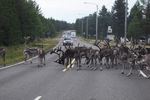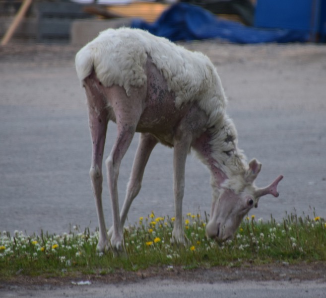 Unser erster Stopp ist erzwungen durch eine ganze Herde Rentiere, die sich auf der Straße herumtreibt. Der 2. Stopp ist gewollt, wir besuchen die Goldgräberstadt Tankavaara – schürfen aber nicht nach Gold, denn wir wollen weiter auf den Berg Kaunispää (450 müM). Da wir wieder nach Navy fahren, landen wir auf einer Schotterstraße, die unterhalb des Gipfels endet, als machen wir uns zu Fuß auf den Weg zum „Gipfel“ – im übrigen ist hier ein Skigebiet. Der Himmel hat sich inzwischen zugezogen und so machen wir uns auf den Weg nach Ivalo um wenige Kilometer später wieder anzuhalten, denn es gibt ein Hinweisschild auf eine Huskyfarm, diese besuchen wir, bewundern Huskys und andere Tiere wie Fuchs, Wildschwein, Marder und Wachtel. Inzwischen hat es angefangen zu regnen und wir fahren nach bis zum Beginn des Inari-Sees, wo wir die Nacht verbringen werden. Mario versucht sein Anglerglück – hat aber keins, er kommt zurück, muss sich umziehen um ins Wasser zu gehen um seinen Blinker vor dem sicheren Verschwinden zu retten (hat sich in den Steinen verheddert). Danach ist Schluss mit angeln – Gottseidank haben wir noch etwas zu Essen im Kühlschrank.