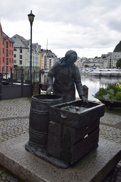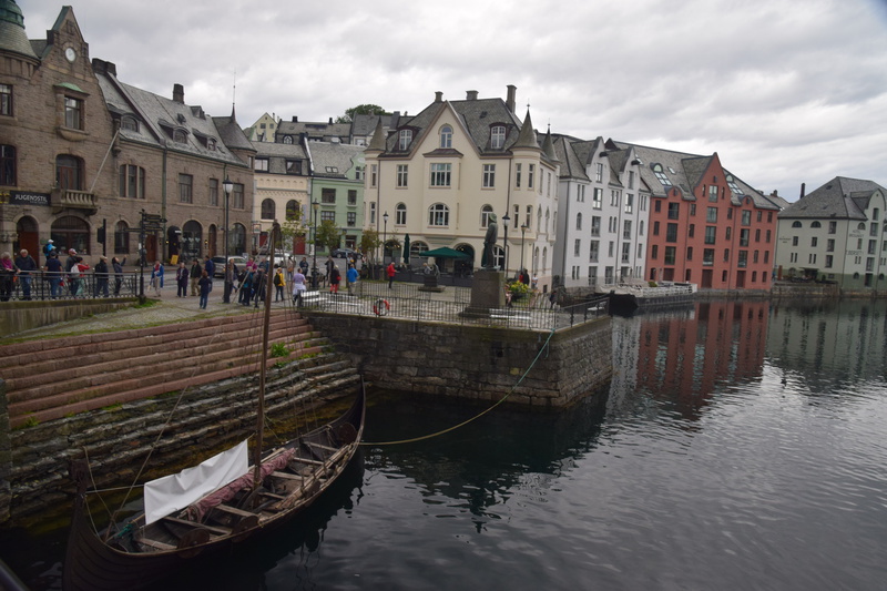 Regen, Regen, Regen!! Wir besuchen Hans-Jürgen. Es geht im besser, er hat die ganze Nacht geschlafen, die Schmerzen halten sich in Grenzen, das Bein ist nicht mehr so dick wie noch gestern. Gespräche mit dem ADAC sind in Gang. Wir verabschieden uns von den beiden und machen uns auf den Weg Alesund zu besichtigen. An so einem Regentag fängt man natürlich nicht mit einem Stadtrundgang an, nein besucht entweder ein Museum oder in unserem Fall das Alesund Aquarium. Dieses gilt als größte Aquarienanlage in ganz Skandinaven – an einem Morgen wir heute genau das Richtige und auch wirklich empfehlenswert. Zurück in der Stadt, es hat aufgehört zu regnen, machen wir einen 2stündigen Bummel durch die sehenswerte Altstadt mit vielen Jugendstilhäusern und kleinen Geschäften. Danach geht es zuerst mit „Gretchen“, anschließend zu Fuß auf den Aussichtsberg Aksla, wo man einen tollen Rundblick über die Stadt und alle vorgelagerten Inseln hat. Selbst bei diesem Wetter eindrucksvoll. Zurück bei „Gretchen“ fängt es wieder an zu regnen und wir fahren wieder zur Klinik. Hans-Jürgen und Christa strahlen – Hans-Jürgens Bein hat sich im Laufe des Tages so gut entwickelt, dass der Arzt sein ok für eine Heimfahrt mit dem eigenen Fahrzeug gegeben hat. Er selbst soll nicht fahren, aber der Arzt sieht kein Problem darin, wenn er daneben sitzt und sein Bein nach Möglichkeit hochlagert. Alle sind erleichtert! Wir bleiben diese Nacht noch mit Christa auf dem Parkplatz und setzen unsere Tour morgen fort.