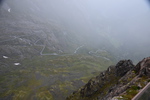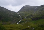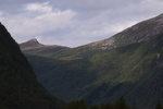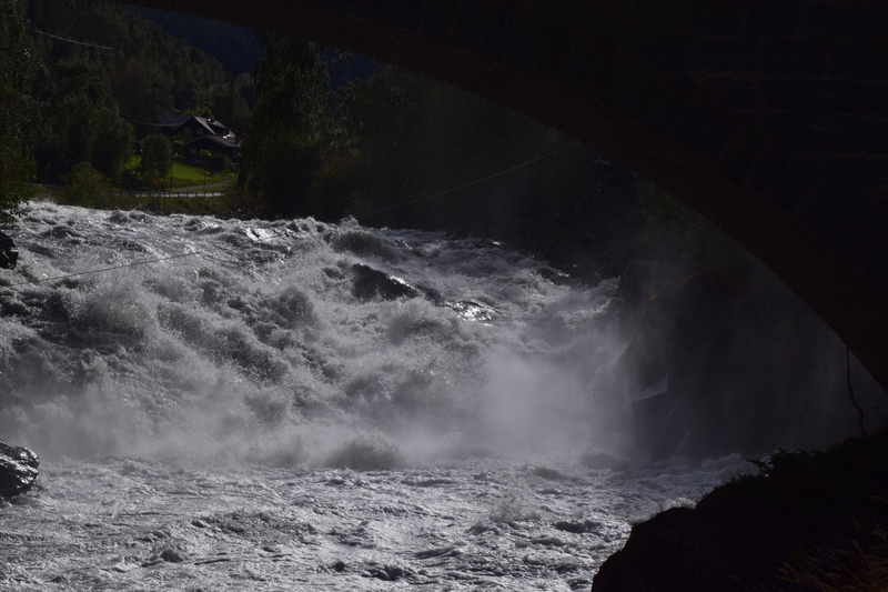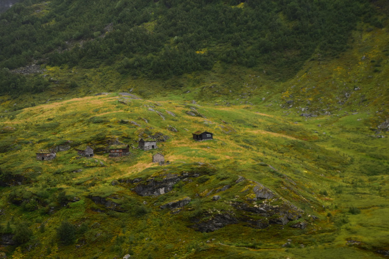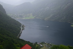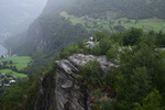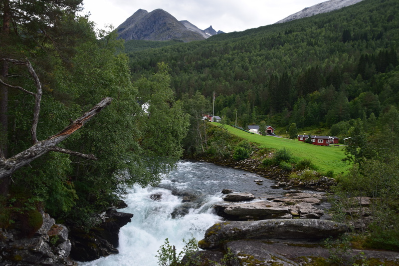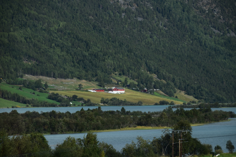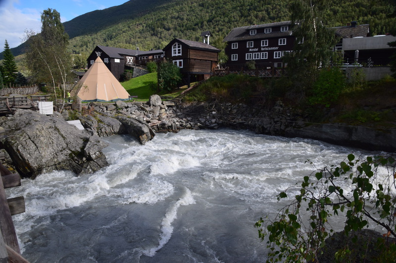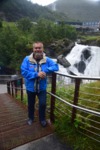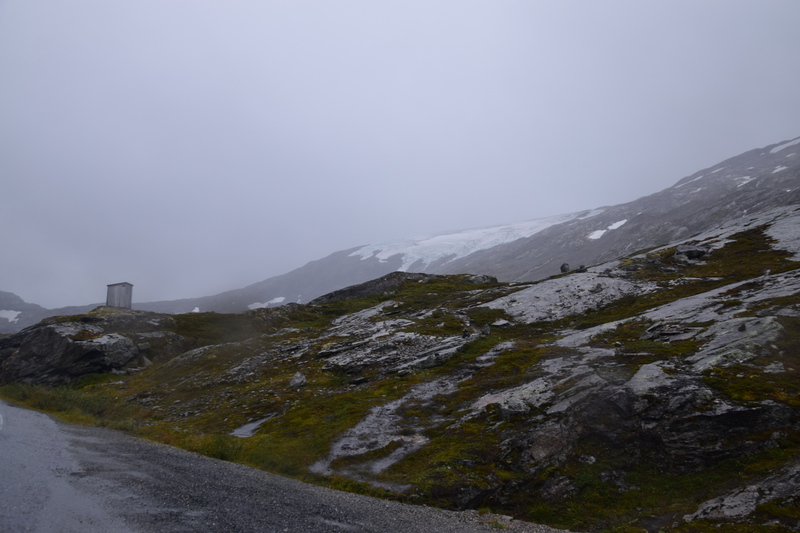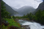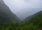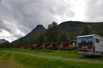 Ich erzähle nichts Neues, wenn ich sage, dass es regnet. Nach einem gemeinsamen ausgedehnten Frühstück verabschieden wir uns, die beiden fahren Richtung Norden, wir weiter Richtung Süden. Mit der Fähre geht es nach Eidsalen und zum Geirangerfjord. Wir halten an allen Aussichtspunkt (haben aber kaum Aussicht)! Im Ort Geiranger machen wir einen kurzen Spaziergang zum Wasserfall. Danach fahren wir auf den Dalsnibba (1.500 m). Oben angekommen bläst uns der Wind fast weg und der Regen kommt uns waagerecht entgegen. Wir gehen zum Felsabbruch nur wenige Meter und sind danach patschnaß und gesehen haben wir nicht wirklich viel und es hat gerade mal 4°, also nichts wie weg. Wieder im Tal angekommen, reißt der Himmel auf und wir bekommen ein paar Sonnenstrahlen ab. Wir fahren an reißenden Flüssen mit Stromschnellen und Wasserfällen entlang. Unser Ziel ist Vagamo, ein kleiner Ort am Fuss Otta, an dem wir die Nacht verbringen werden.