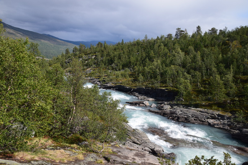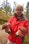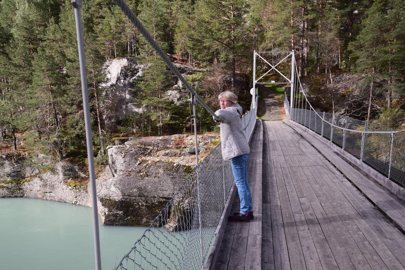 Ein schöner Morgen, es regnet nicht und wir machen einen Spaziergang über eine nahe Hängebrücke. Dann geht es, wie so oft in den letzten Tagen, wieder einige Kilometer zurück – wir wollen auf einer Nebenstraße weiter. Wir kommen in ein Wandergebiet, halten kurz an, der Wind pfeift über die Hügel, es hat gerade mal 8°, also fahren wir lieber weiter. Während wir bei schönstem Wetter, durch eine traumhafte Landschaft fahren, komme ich auf die Idee, dass es hier eigentlich Pilze geben müßte. Kurz danach finden wir einen Platz zum Stehen und dann gehen wir nur ein paar Schritte und finden den ersten Steinpilz – die Suche hat begonnen und in einem Zeitraum von einer halben Stunde haben wir 3 Kilo Pilze (davon ein knappes Kilo Steinpilze) gesammelt. Zurück bei „Gretchen“ werden die Pilze gleich sortiert, geputzt und geschnitten. Die Steinpilze kommen in den Kühlschrank, die anderen werden in Tüten verpackt und eingefroren. Weiter geht es, bis wir einen Abzweig erreichen, bei dem zu einem Campingplatz geht – hier bleiben wir.( Gebiet Sjodalen am Jotunheimen Nationalpark ) Wir nutzen das schöne Wetter und machen eine 3stündige Wanderung. Um 16 Uhr sind wir wieder zurück und sitzen seit langem wieder einmal neben „Gretchen“ in der Sonne. Der Frust über den Regen der vergangenen Tage ist vergangen und wir haben beide wieder gute Laune – was so ein Sonnentag ausmacht.